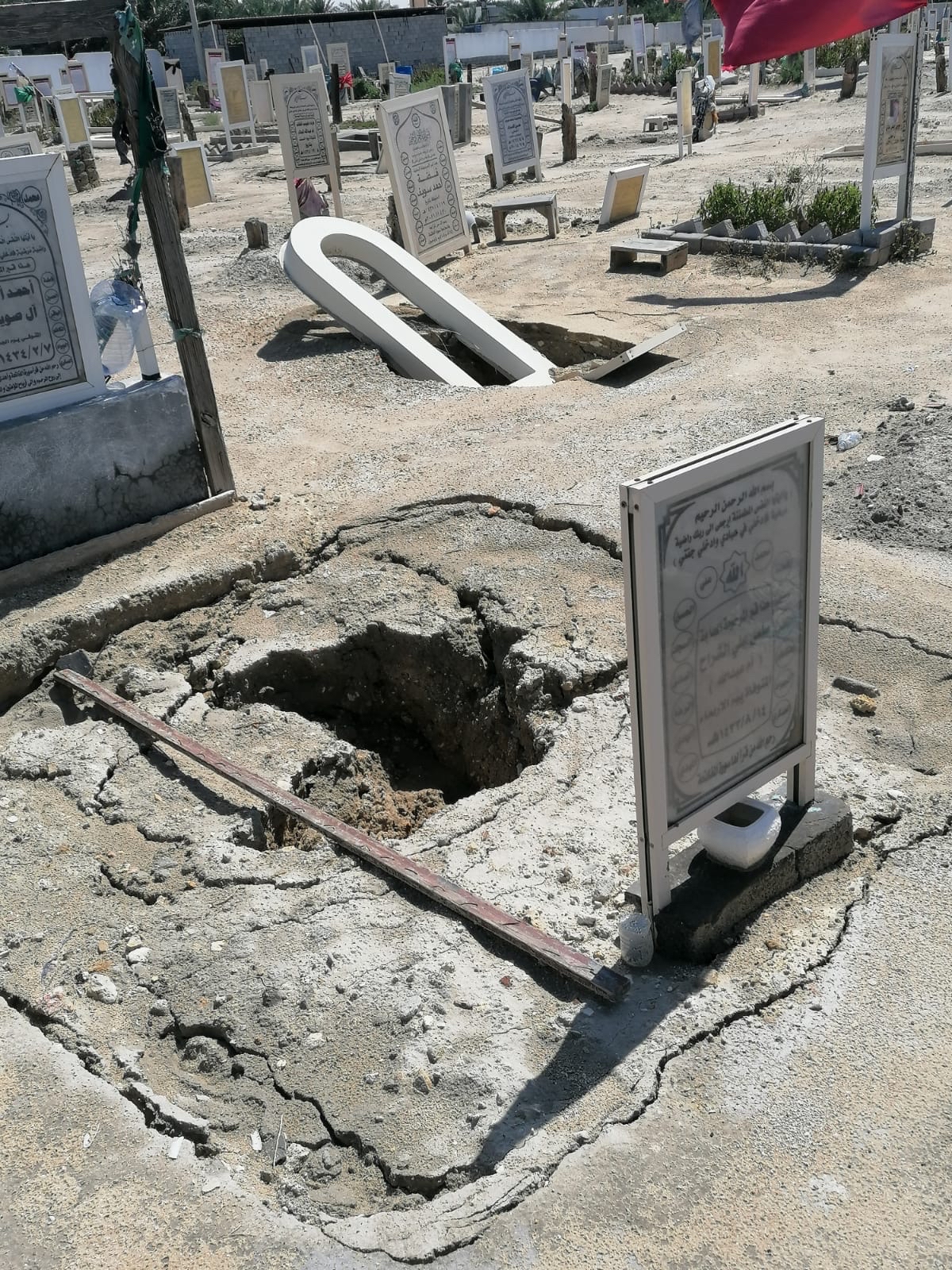 وأعلنت كل من جمعيتي تاروت سيهات عن تضرر عدد كبير من القبور، داعيتين زوار المقابر إلى توخي الحيطة والحذر أثناء زياراتهم.