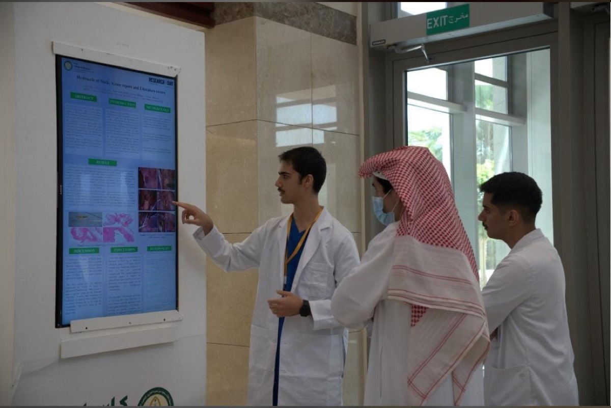 وقدم طلاب وطالبات الكلية مشاركات بحثية، عمل على تقييمها وتحكيمها عدد من أعضاء هيئة التدريس، ومن ضمنهم البروفيسور الجامعي الدكتور وسيم بدر الطلالوة، والذي أكد أهمية إسهامات الطلاب والطالبات البحثية؛ لتعزيز مهاراتهم وقدراتهم، لإعداد أطباء مستقبل زاهر وواعد.