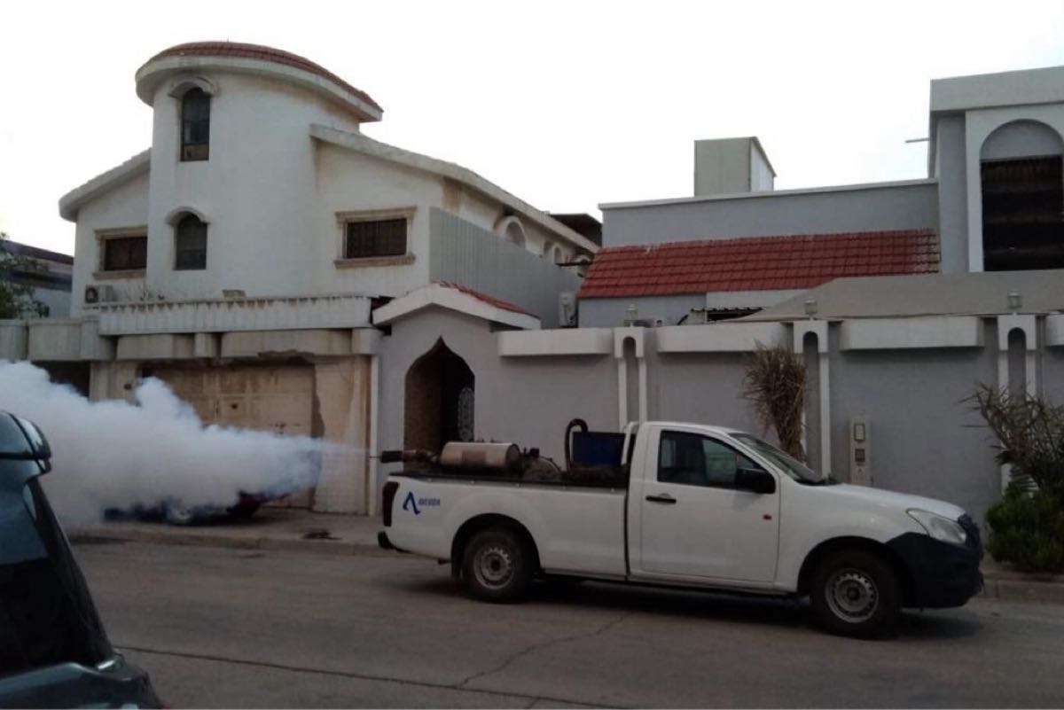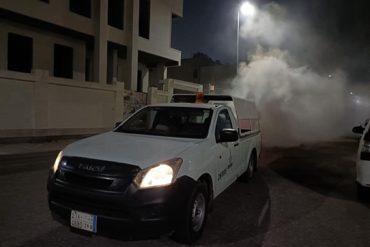 - رش المبيدات خلال فترتين صباحية ومسائية لمختلف الأحياء.