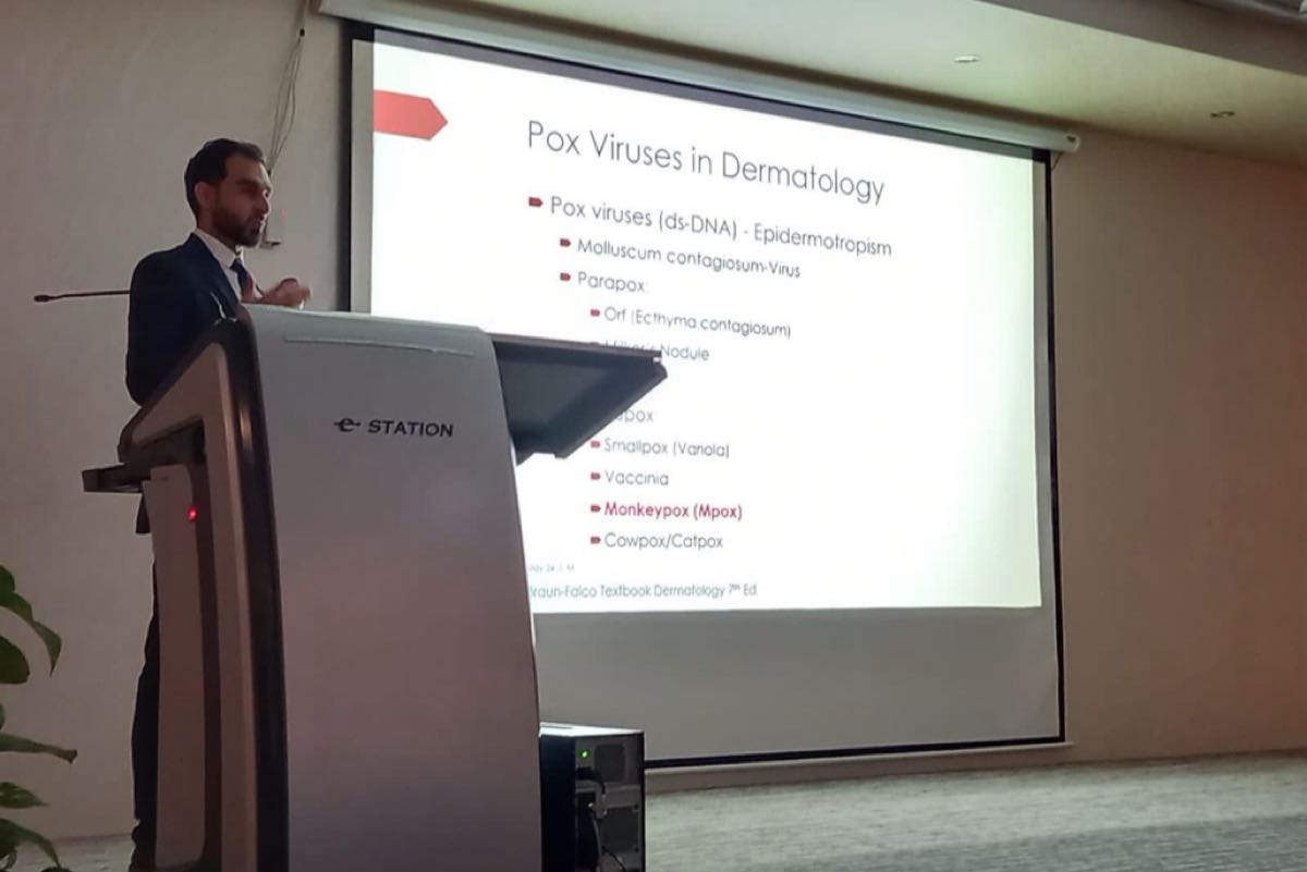 وأوضح المحاضرون أن الفيروس ينتقل إلى البشر عن طريق الاتصال المباشر مع شخص مصاب أو مواد ملوثة، أو حتى حيوانات حاملة للفيروس. وأكدوا على أهمية الفحوصات المخبرية لتأكيد التشخيص، وذلك عن طريق اختبارات تفاعل البوليمراز التسلسلي على عينات من الآفات الجلدية.