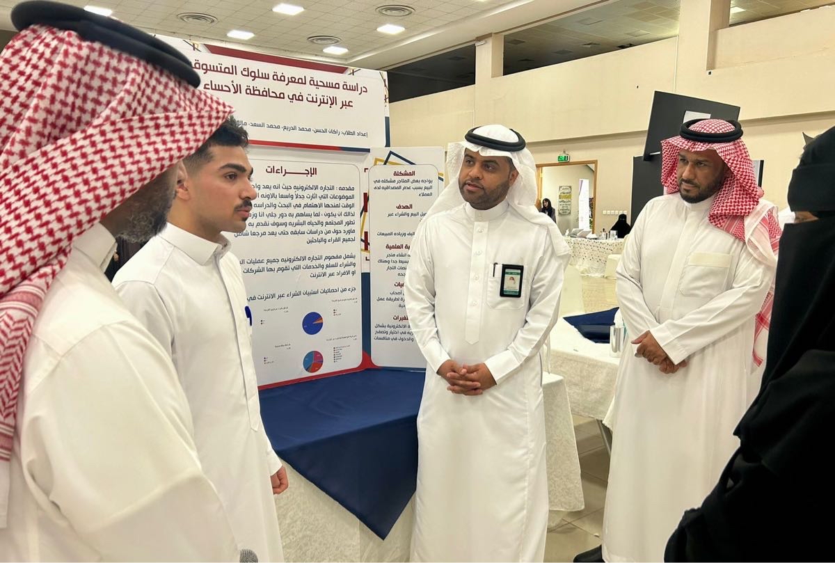 واستمع الضيوف إلى شرح من الطلاب والطالبات عن مشاريعهم البحثية، التي تنوعت بين العلمية والاقتصادية والإدارية والبيئية والصحية، ومن ذلك مشروع أثر القفاز اللمسي في تسهيل التحكم في الواقع الافتراضي، والذي عمل عليه الطلاب ”علي القطيفي، ومحمد النامي، وعبدالله الشوارب، وعبدالله المالكي، وعبدالمجيد السماعيل“.