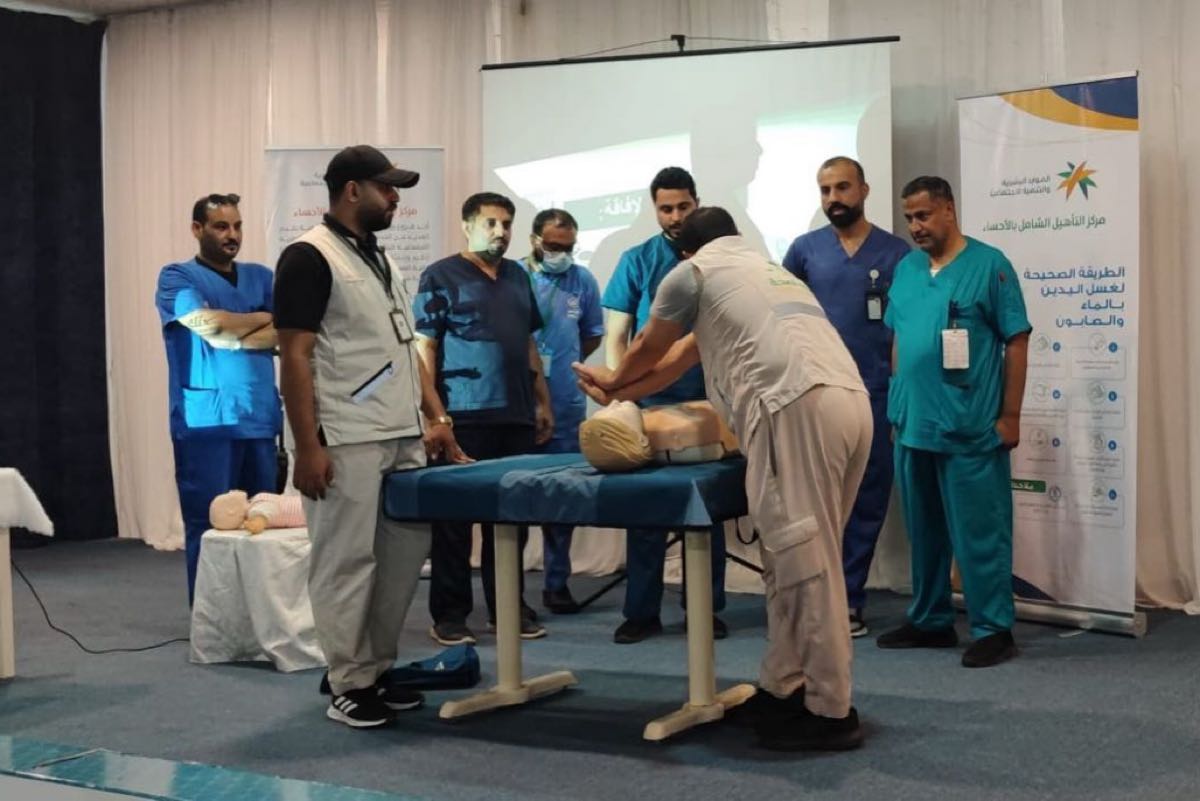 نظم مركز التأهيل الشامل بالأحساء ورشة عمل تدريبية حول الإسعافات الأولية، بالتعاون مع إدارة الكوارث والأزمات الصحية، بمشاركة أكثر من 50 موظفًا وموظفة من مختلف أقسام المركز.