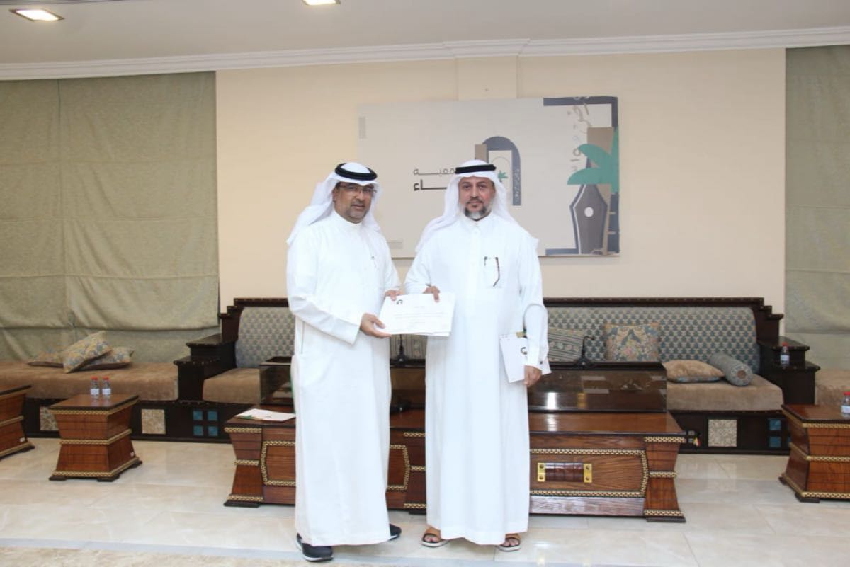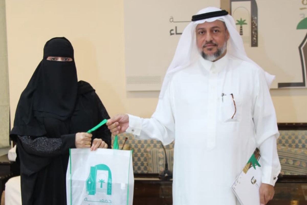وسلم الرئيس كتاب الفضاء المكاني مصحوبًا ببطاقة تهنئة لمعصومة العبدالرضا على عبور إصدارها للنور، والذي يعد باكورة إصدارات جمعية أدباء.
