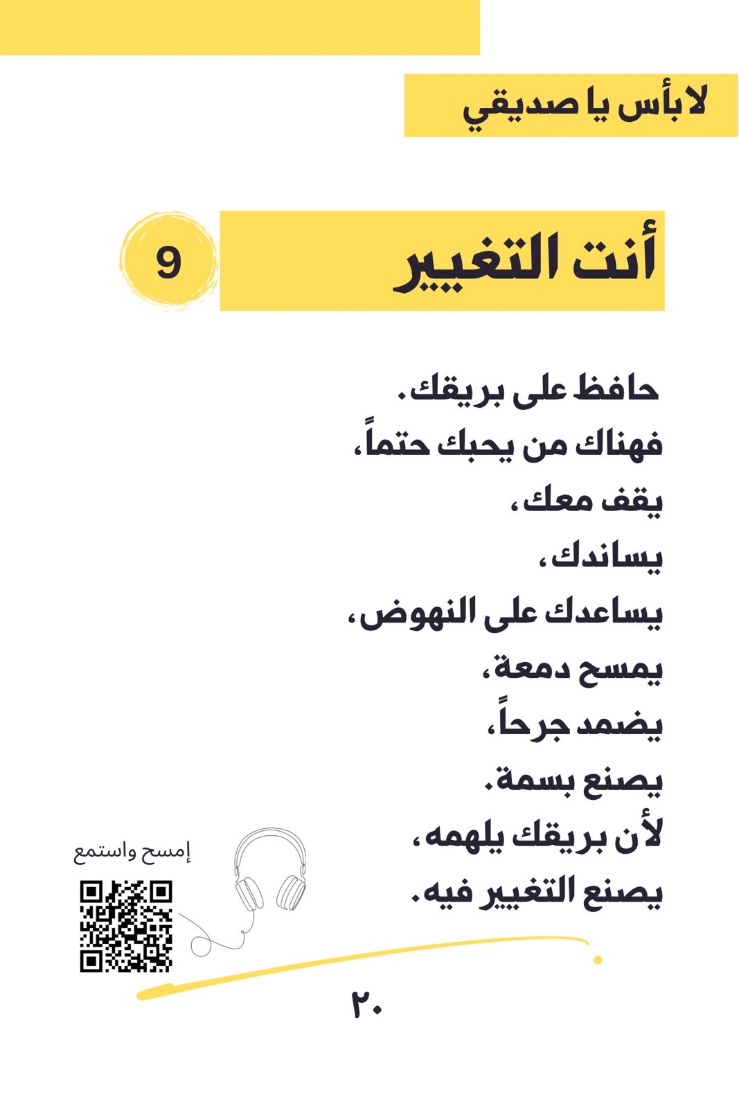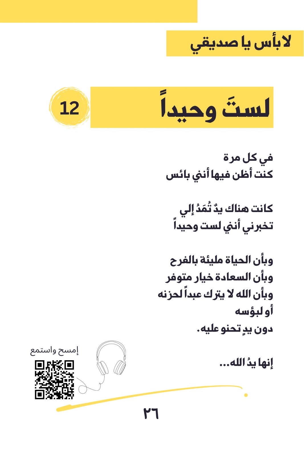 وقال يأتي كتاب ”It's Okay, Friend“ كأول كتاب عربي من نوعه يجمع بين 30 رسالة إيجابية وتقنية المسح الضوئي ”QR code“ للاستماع إلى تفاصيل الرسائل، بالإضافة إلى تمارين وتفاعل مع الكاتب عبر بودكاست يحمل نفس الاسم.