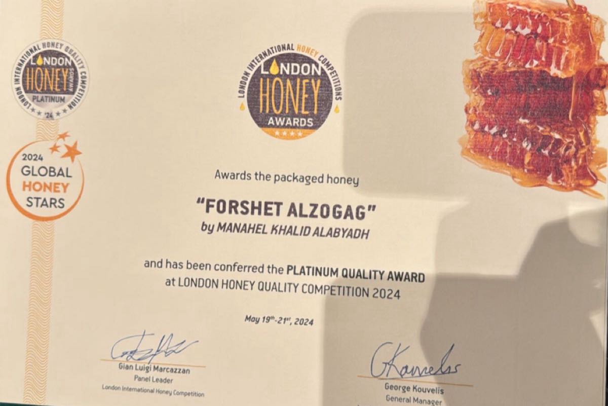 النحال خالد الأبيض ”الأول“ عالمياً في مسابقة جودة العسل بلندن