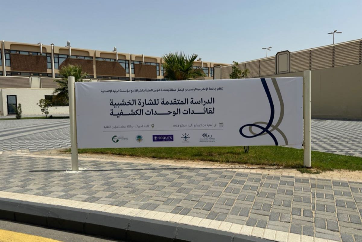 أطلقت عمادة شؤون الطلبة في جامعة الإمام عبدالرحمن بن فيصل، برنامج ”الدراسة المتقدمة للشارة الخشبية لقائدات الوحدات الكشفية“، بالشراكة مع مؤسسة الوليد للإنسانية، وجمعية الكشافة العالمية، والذي يستمر لمدة 5 أيام في قاعة الدورات بمجمع الأنشطة، ضمن مشروع تأهيل قائدات الكشافة بالجامعات السعودية.