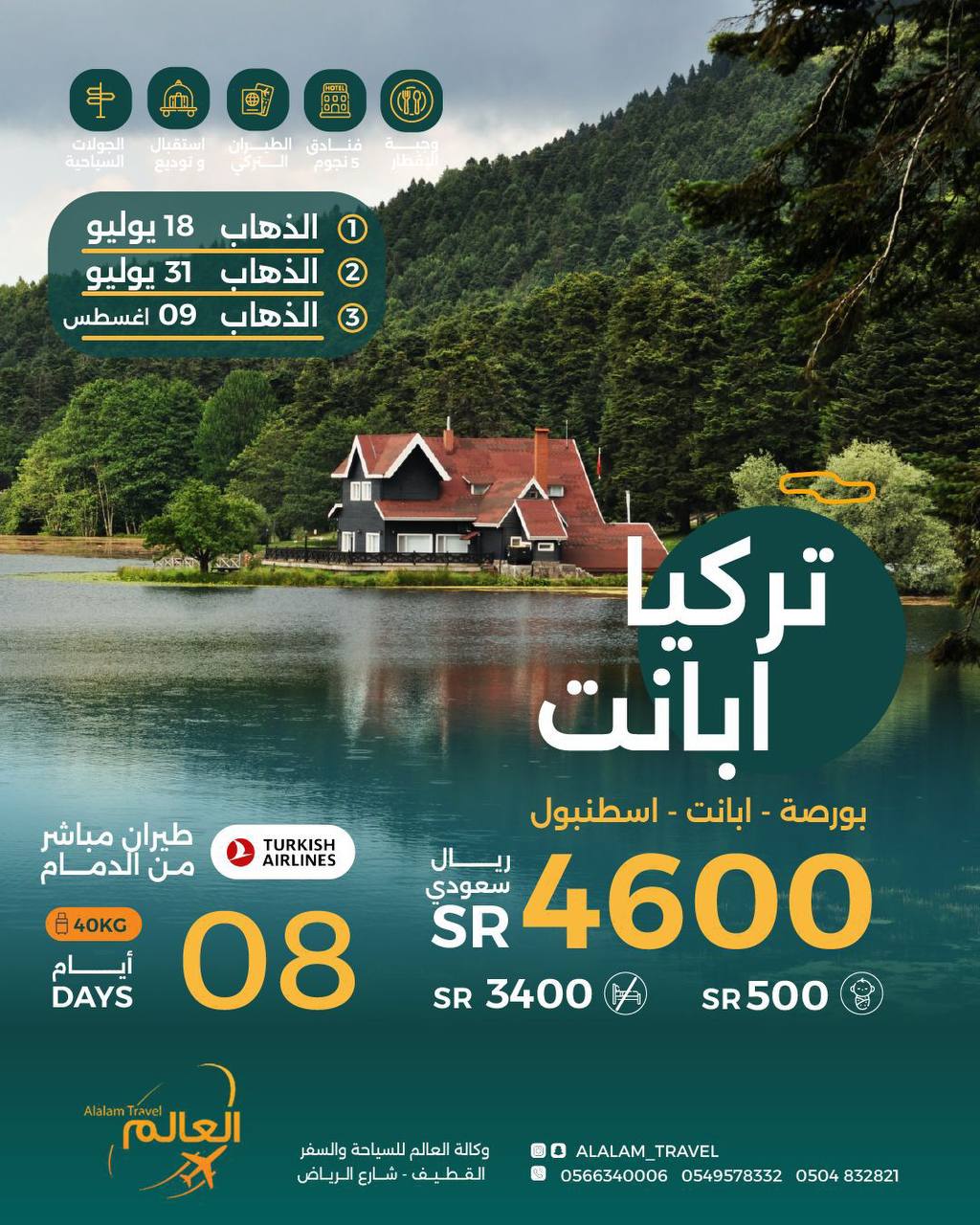 ‏🇹🇷 تركيا 8 ايام 4500 ريال