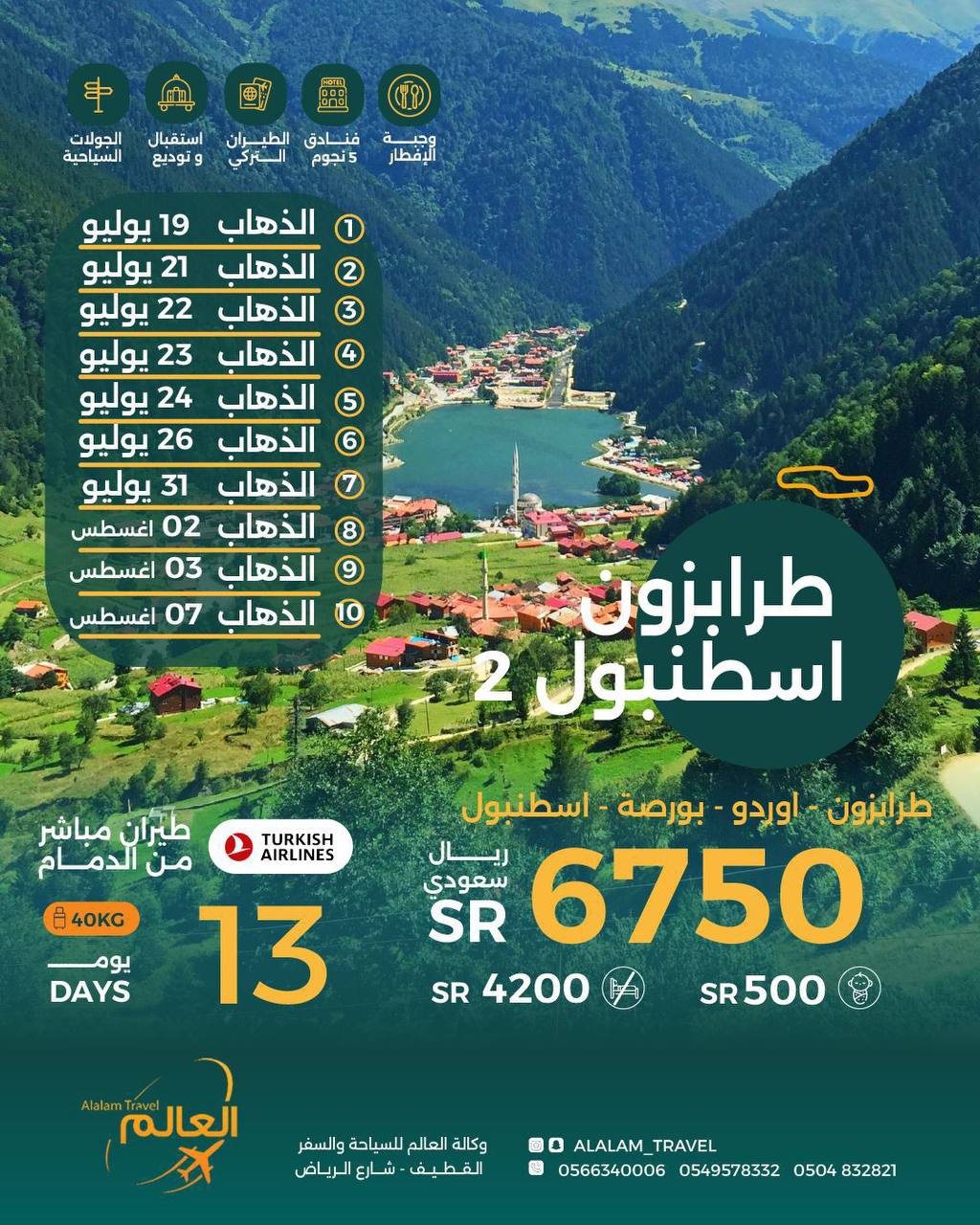 ‏🇹🇷 طرابزون واسطنبول 13 يوم 6750 ريال