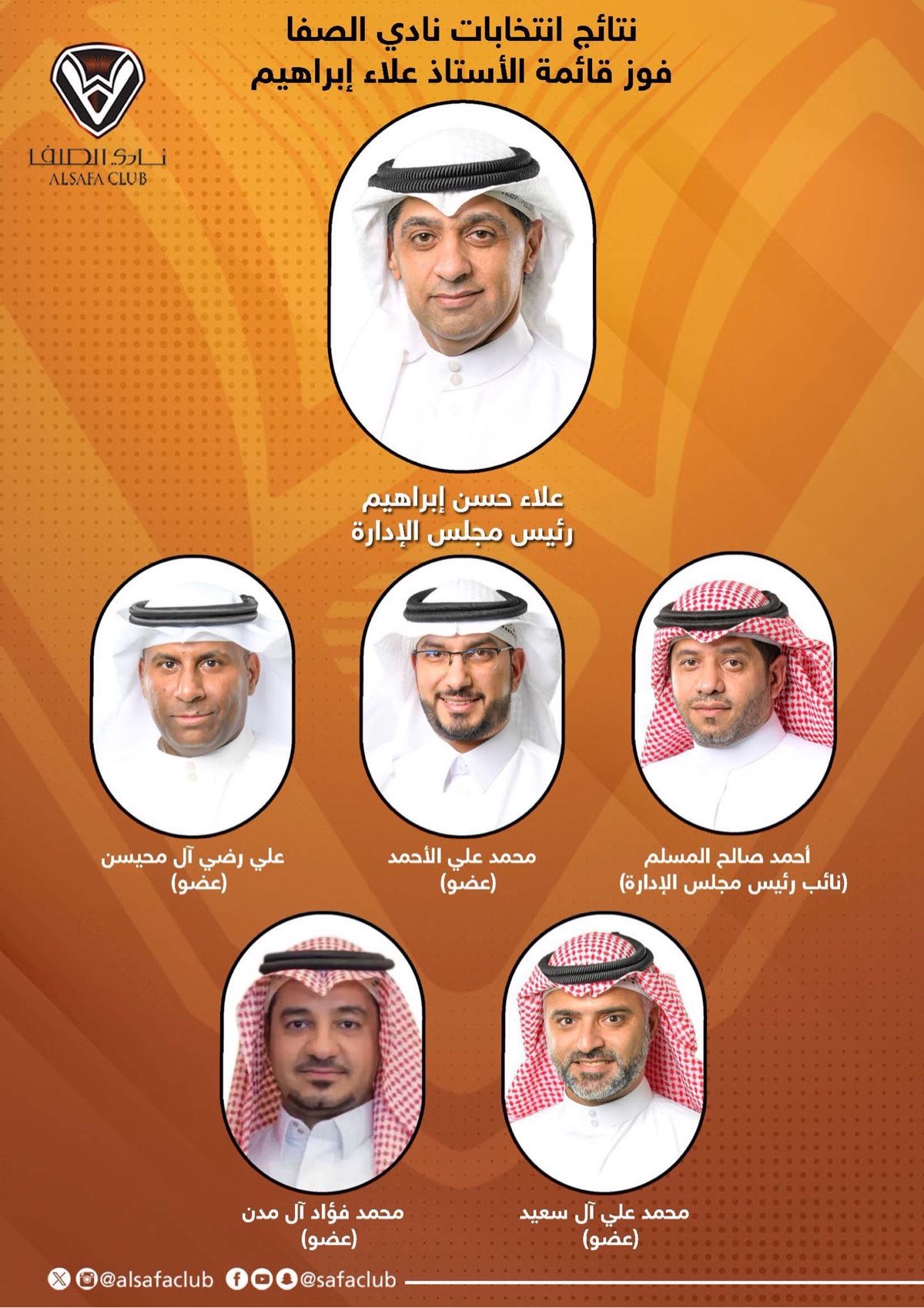 عقد نادي الصفا انتخاباته، وأسفرت عن فوز قائمة علاء إبراهيم برئاسة مجلس الإدارة. وتضم القائمة كلاً من:
