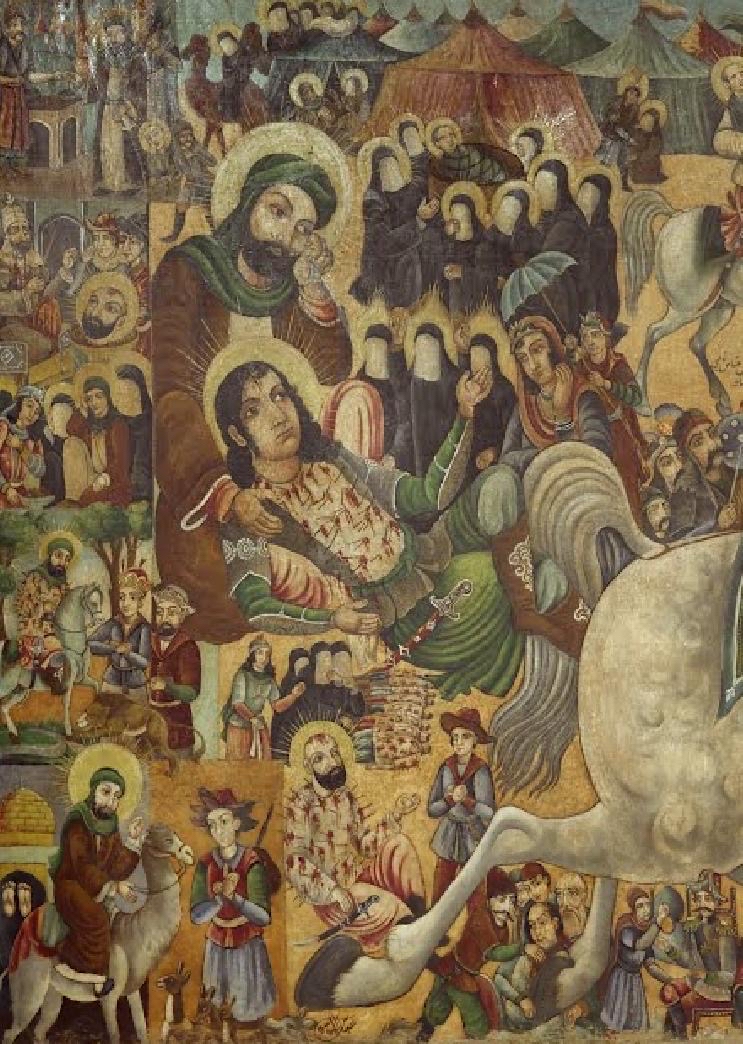 إنها مشاهد ملحمية تحمل تكوينات مموسقة من بصمات الفن الفارسي العريق، ممزوحة برؤية الفنان واعتزازه القومي وانتمائه لجذوره الفنية والدينية الضاربة في القدم، كل تكوينات اللوحة أشبه بطقس شجي نسمع نياحاته المفزعة أنينا مسافرا حيث تاريخ الواقعة وكأنها لم تزل مستعرة نابضة في الوجدان، تنضح العناصر في كل جزئياتها بألوان شفيفة وأخرى معتقة آتية من أزمنة غابرة، فكل خطوطها ونفسها التشكيلي وقدمها الزمني بمثابة مخطوط نادر ونفيس، يغري العين بقراءتها لعمقها الفني والدلالي، مما جعلها شامخة كتحفة فنية ثمينة متفردة ضمن مقتنيات متحف «بروكلين» بنيويورك، شاخصة أمام الأبصار تتحاور مع الزائرين كل يوم.