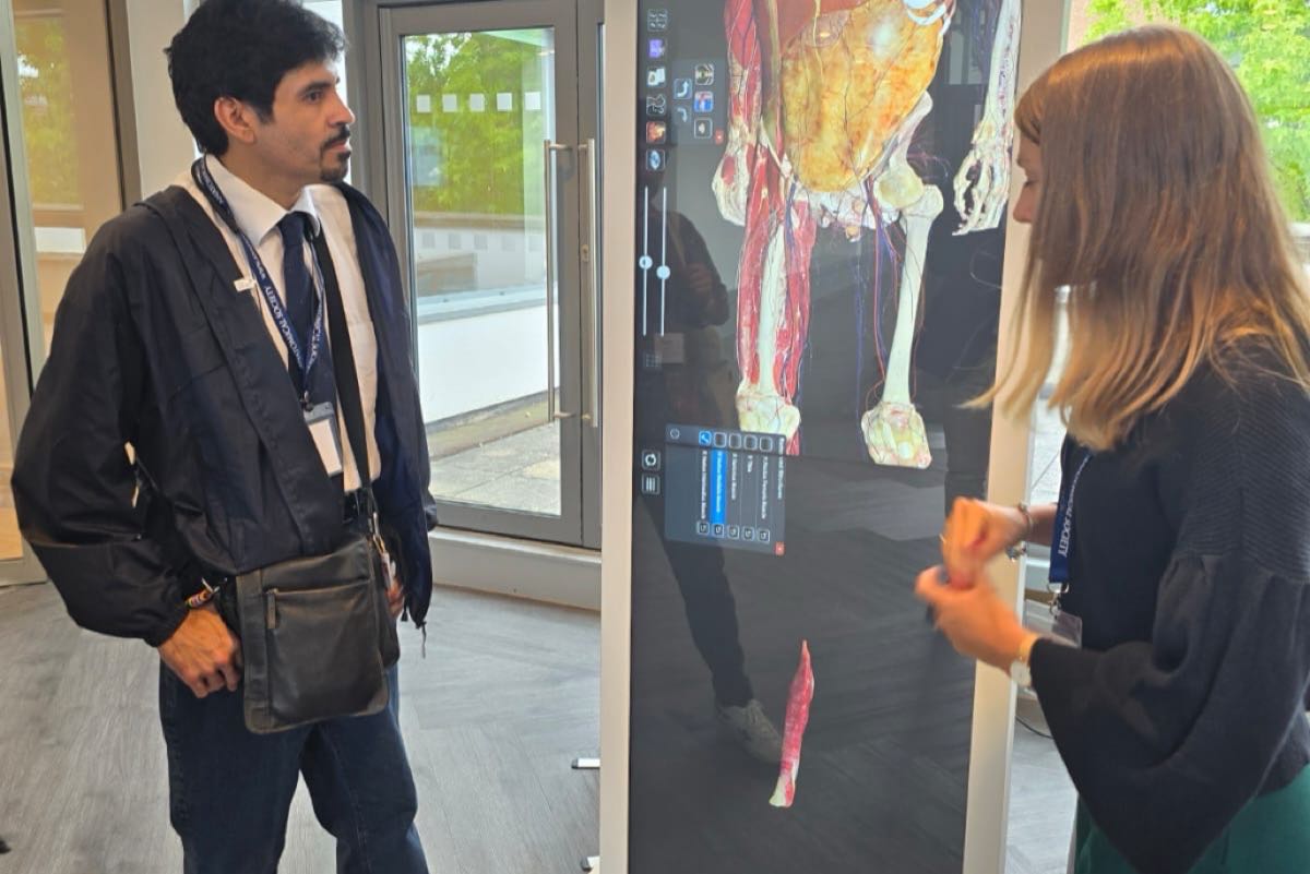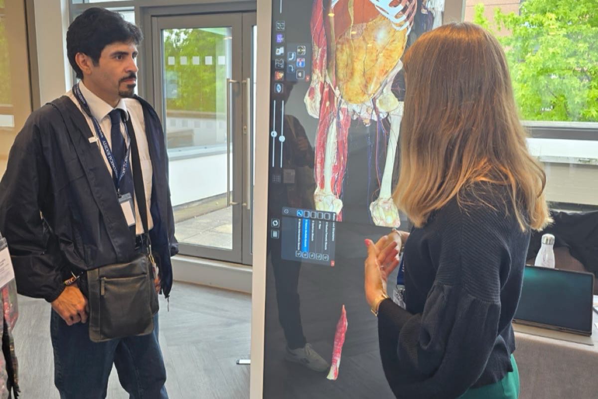 وناقش الطلالوه طرق تعليم التشريح باستخدام الأشعة الصوتية، مؤكداً أن هذه التقنية لا يمكن استخدامها على الجثث بشكل فعال، وأنها تصلح للاستخدام على المرضى في المستشفى.