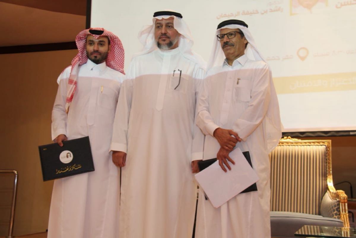 بدوره، ألقى رئيس الجمعية الدكتور محمود آل ابن زيد، كلمة عبر فيها عن أهمية موضوع المحاضرة وطرافته، وأعرب عن شكره للضيف وللحضور، ثم أهدى للمحاضر وللمقدم بطاقة الشكر والعرفان.