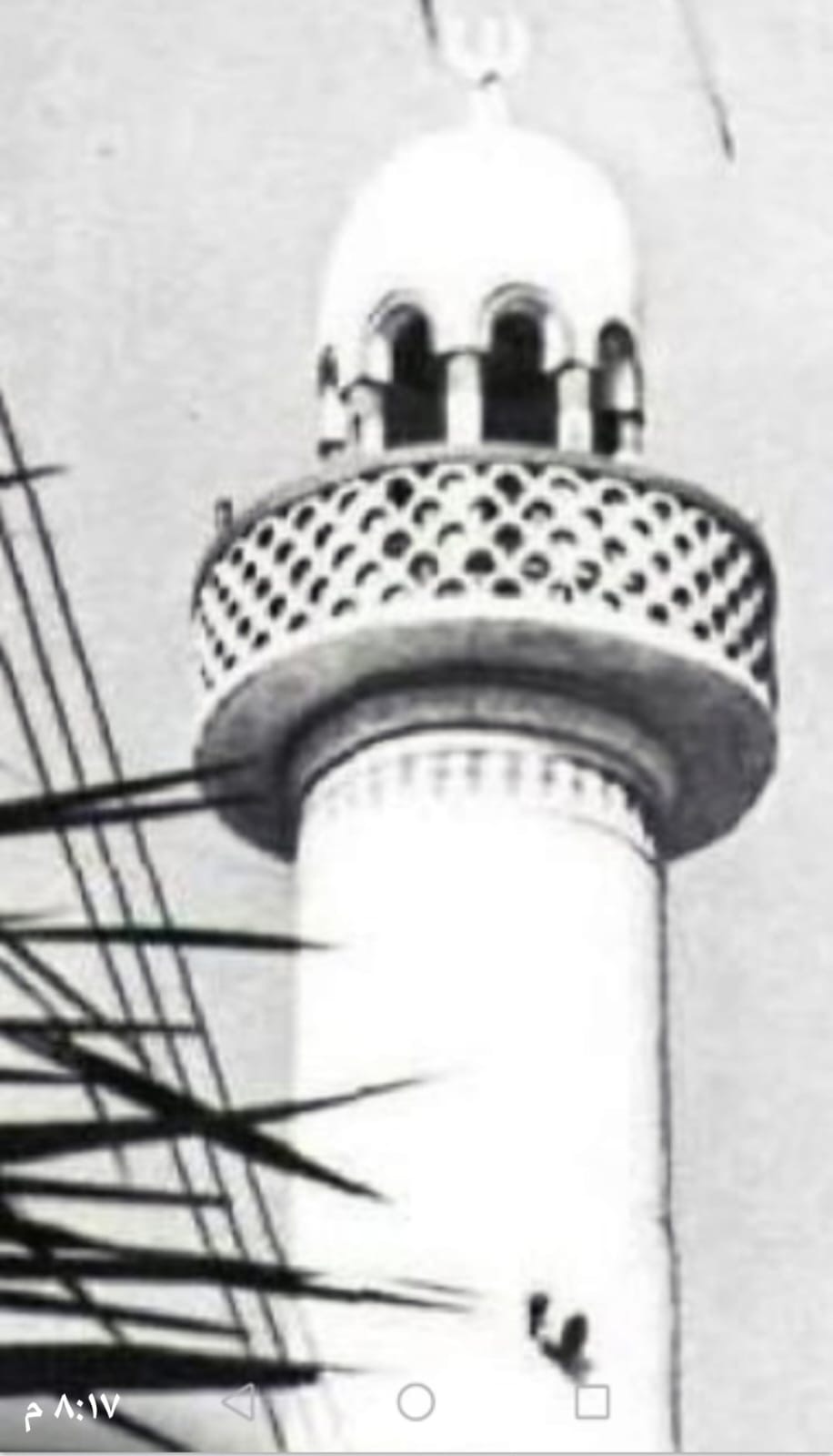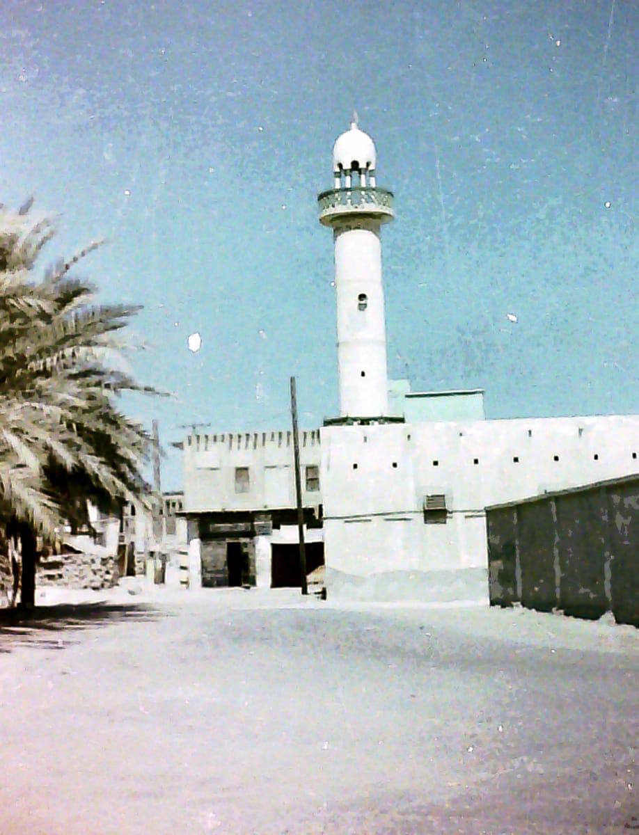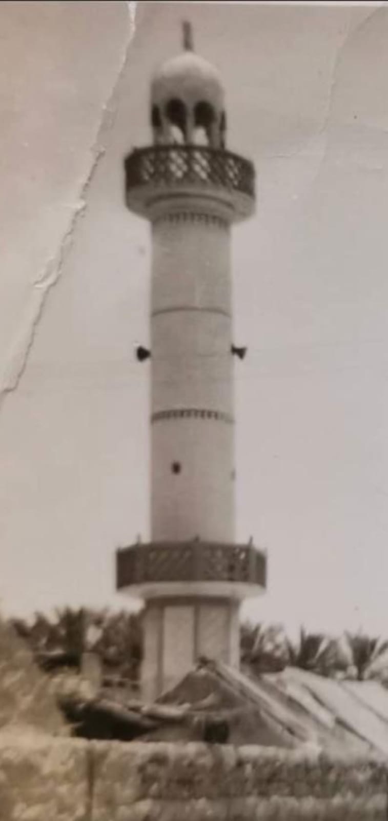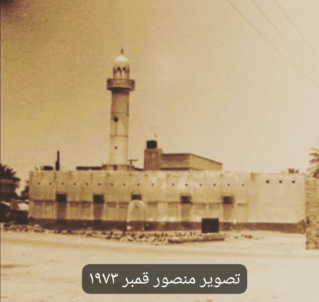 أجاب: ”هدموه وبنوه من جديد بس ما أدري كم المدة بين التهديم والبنيان. ويوم بنوه ما سووا فيه منارة إلا تالي. لحقت عليه أنا ما فيه منارة، المنارة أمس وأول أمس.“