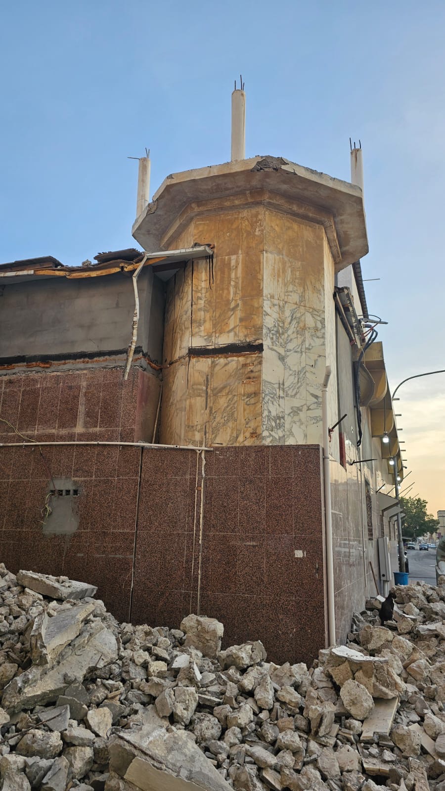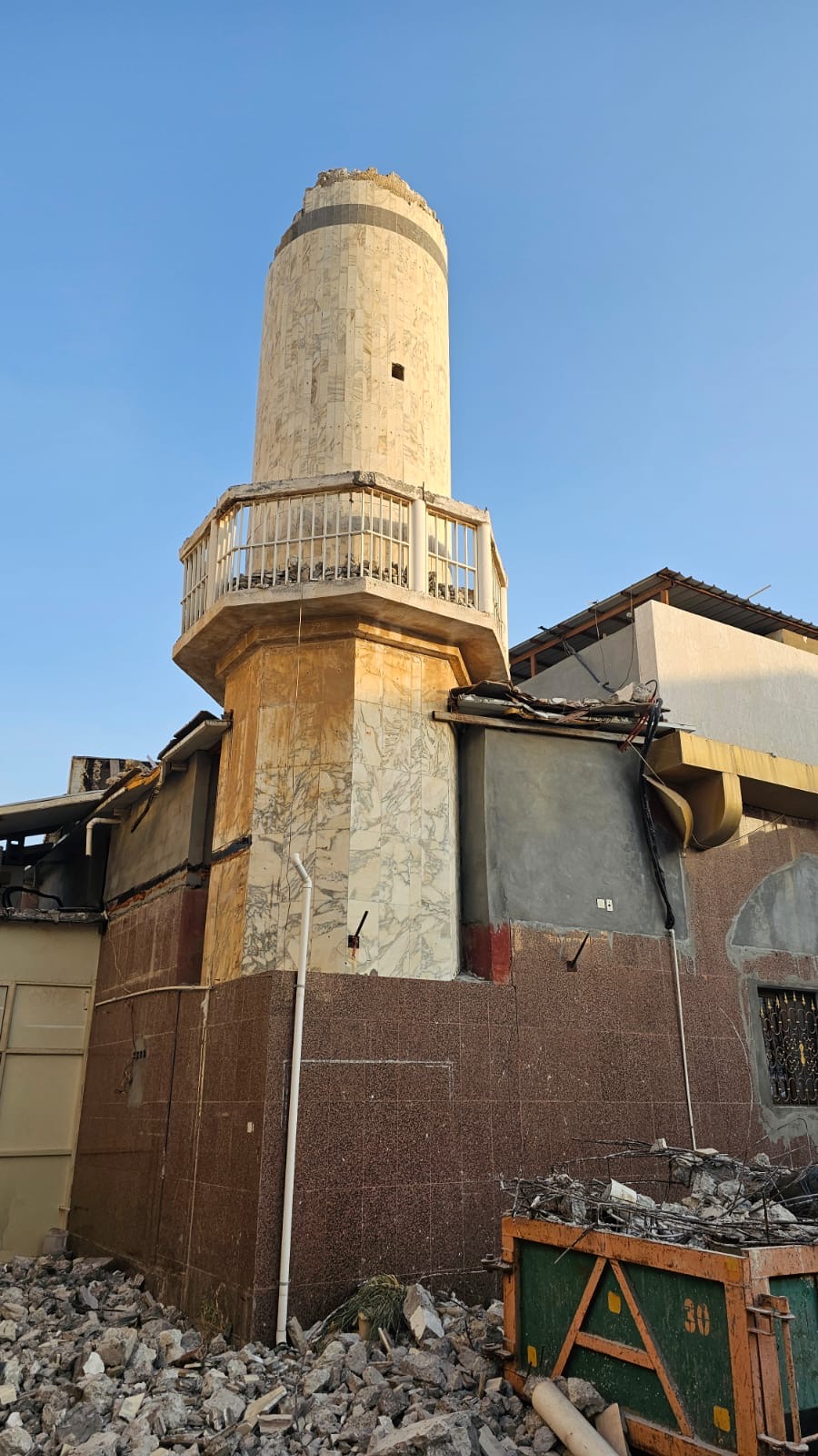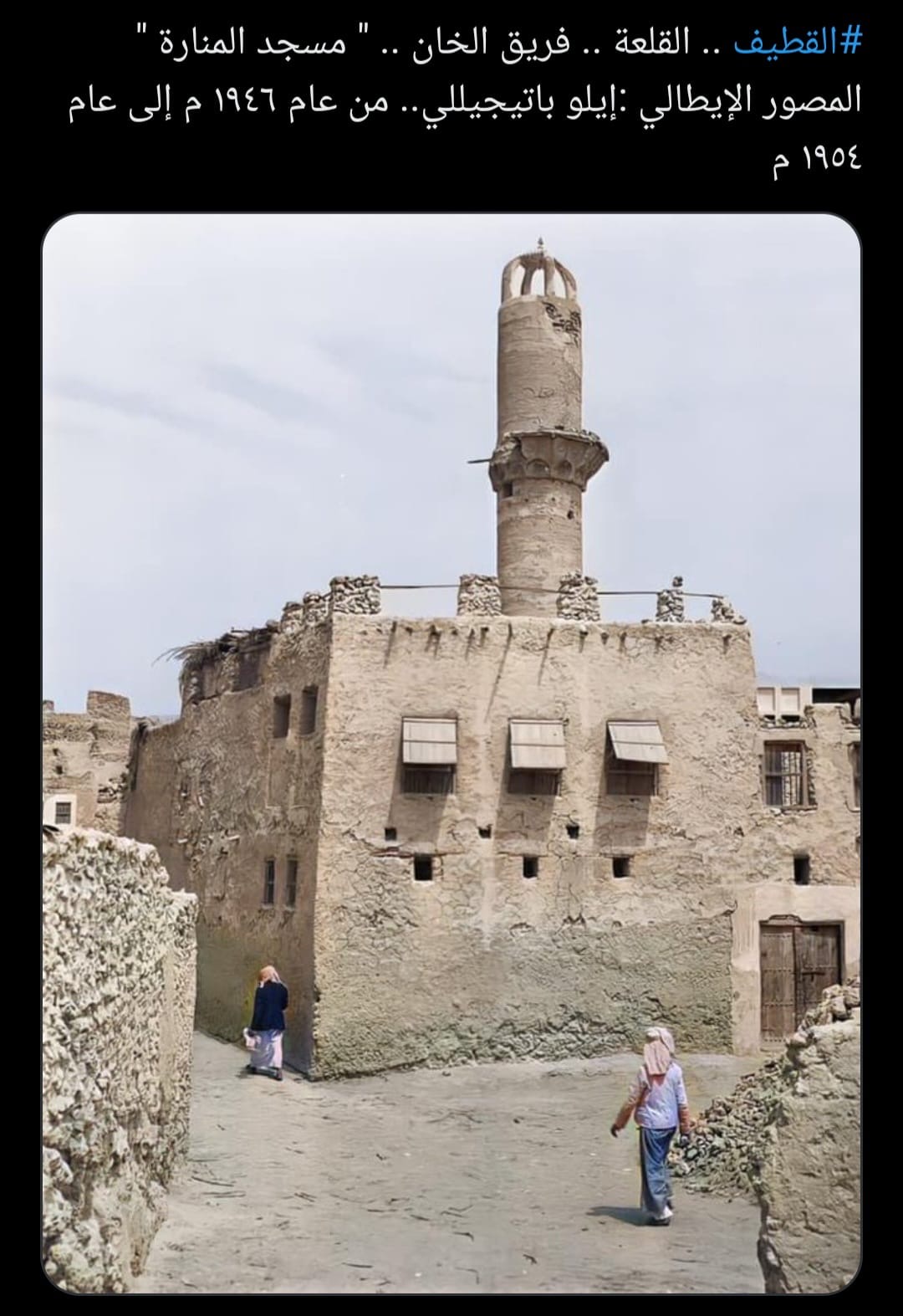 أجاب: ”هدموه وبنوه من جديد بس ما أدري كم المدة بين التهديم والبنيان. ويوم بنوه ما سووا فيه منارة إلا تالي. لحقت عليه أنا ما فيه منارة، المنارة أمس وأول أمس.“