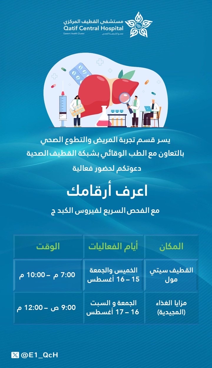 اعرف أرقامك.. واحمِ نفسك من فيروس الكبد في القطيف