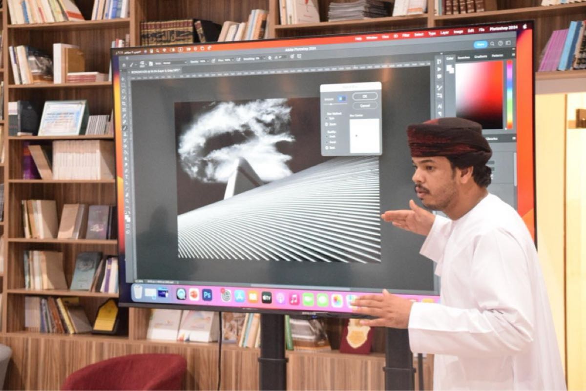 شارك المصور العماني ”محمد الشعيلي“، صاحب معرض ”الحلم“ في الورشة التدريبية بعنوان ”ورشة تعديل الأعمال الفنية والصور“، والتي تناول فيها برنامج الفوتوشوب، وتعديل بعض الأعمال الفنية في مجال البورتريه.