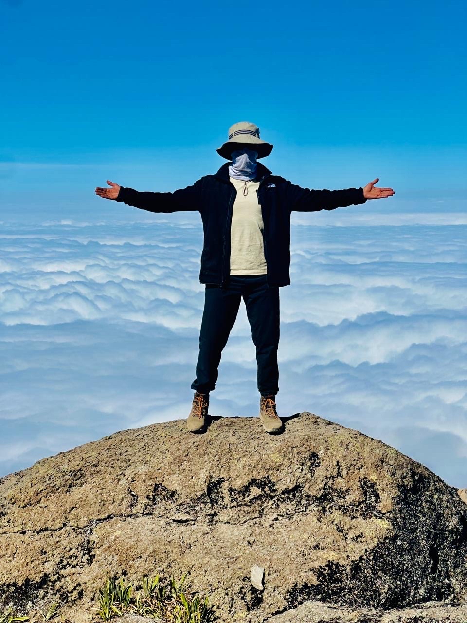 يقول: في رحلتنا إلى قمة جبل كليمنجارو في تنزانيا، التي استغرقت سبعة أيام، وهو الجبل الأكثر ارتفاعًا في أفريقيا، ويقع الجبل في شمال شرق تنزانيا بالقرب من الحدود الكينية، وكانت كل يوم لنا مغامرة جديدة. كنا نتسلق خلال النهار، ونتوقف مع غروب الشمس لننصب خيامنا في البرية، محاطين بجمال الطبيعة العذراء. كنا مجموعة من 12 رياضيًا هاويًا، متحدين ظروفًا قاسية على ارتفاعات شاهقة.