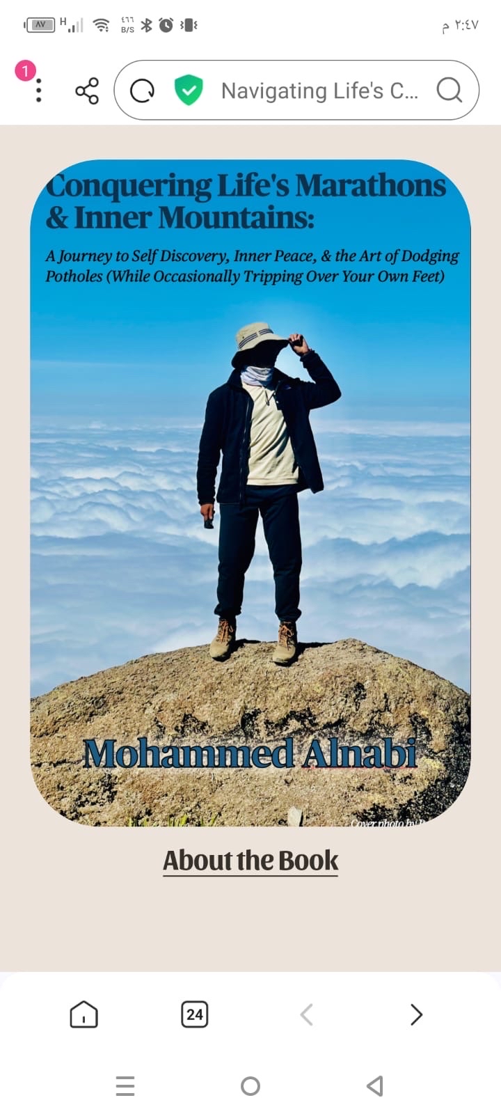 وبالمناسبة، هذه الجبال والماراثونات ألهمتني كتابة كتاب صغير، وكذلك أطلقت موقعًا إلكترونيًا مرتبطًا به http://www.peace-journey.com . الكتاب هو قصة حقيقية بأسلوب مرح وأسماء وهمية، سكبت فيه الكثير من المشاعر والتأملات العميقة التي استخلصتها من تحديات الحياة، والتجارب التي شكلت مسيرتي الشخصية، وسوف يصدر هذا الكتاب قريبًا على أمازون.