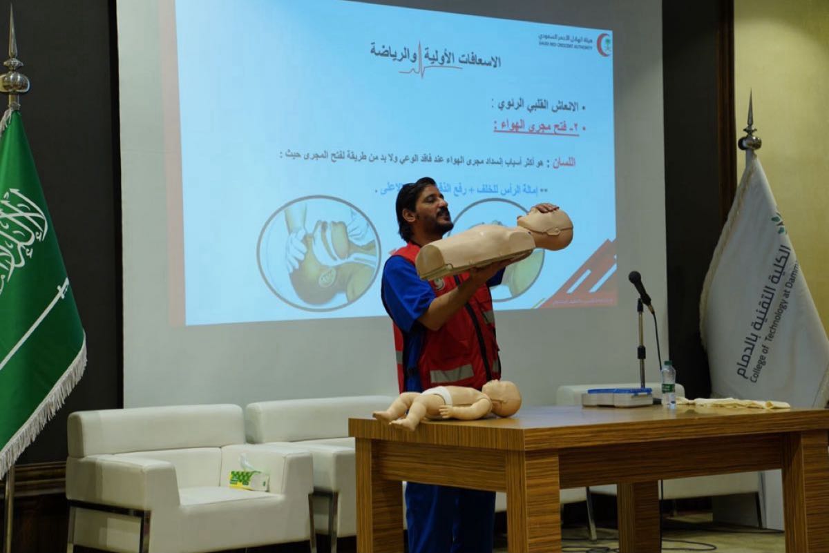 نظمت هيئة الهلال الأحمر السعودي بالمنطقة الشرقية بالشراكة مع جمعية منافع للتنمية الحضرية وكلية التقنية بالدمام، محاضرة إسعافية بمناسبة اليوم العالمي للإسعافات الأولية 2024 م، استفاد منها 300 من منسوبي وطلاب الكلية والجمعية.