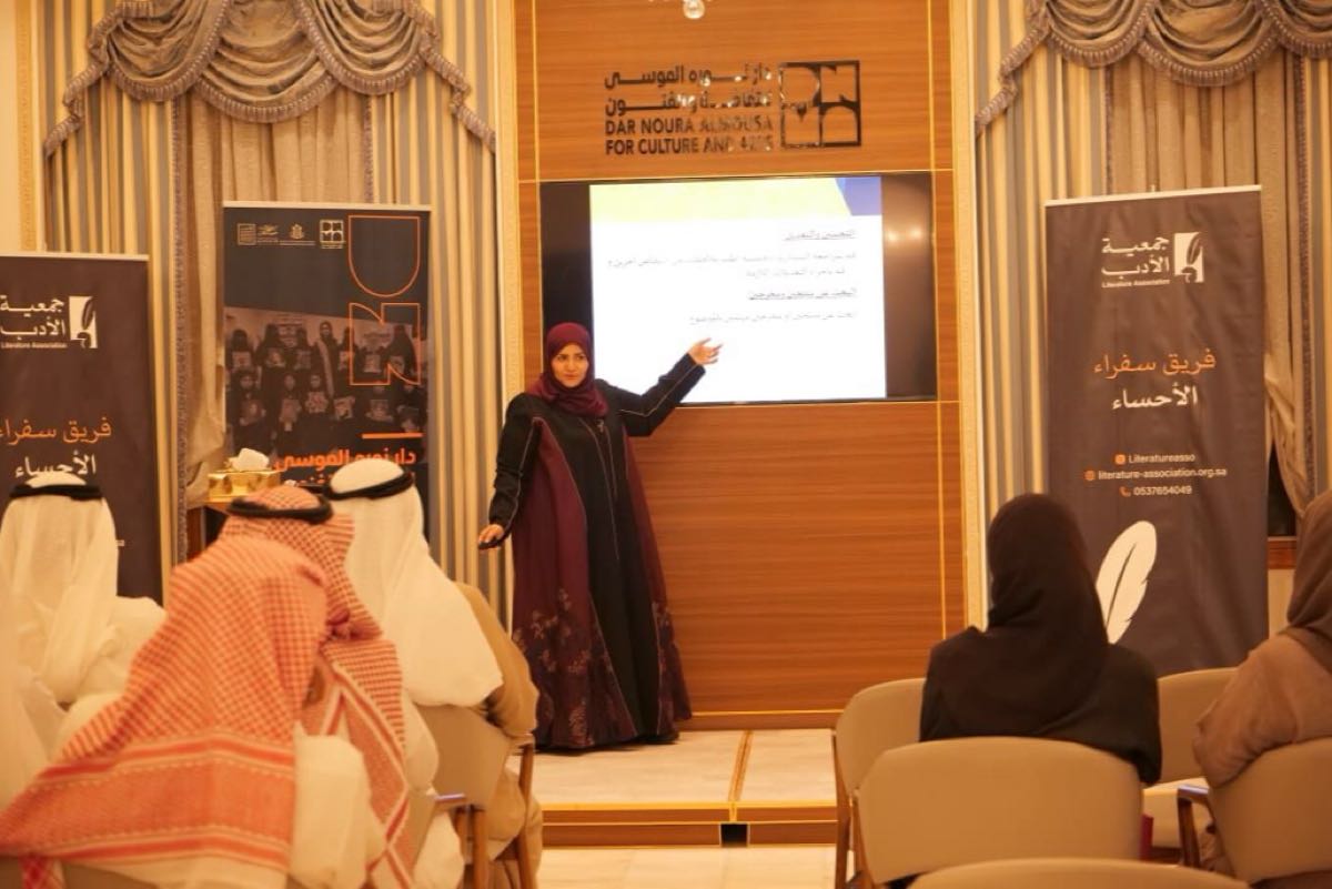 تحت عنوان ”تحويل النص الأدبي إلى عمل درامي“، أقامتْ جمعية الأدب المهنية ورشة تدريبية تثقيفية عبر سفرائها لهذا العام 2024 2025 م، في ليلة من ليالي الأحساء المثقّفة المبدعة، والتي أقيمت في دار نورة الموسى للثقافة والفنون.