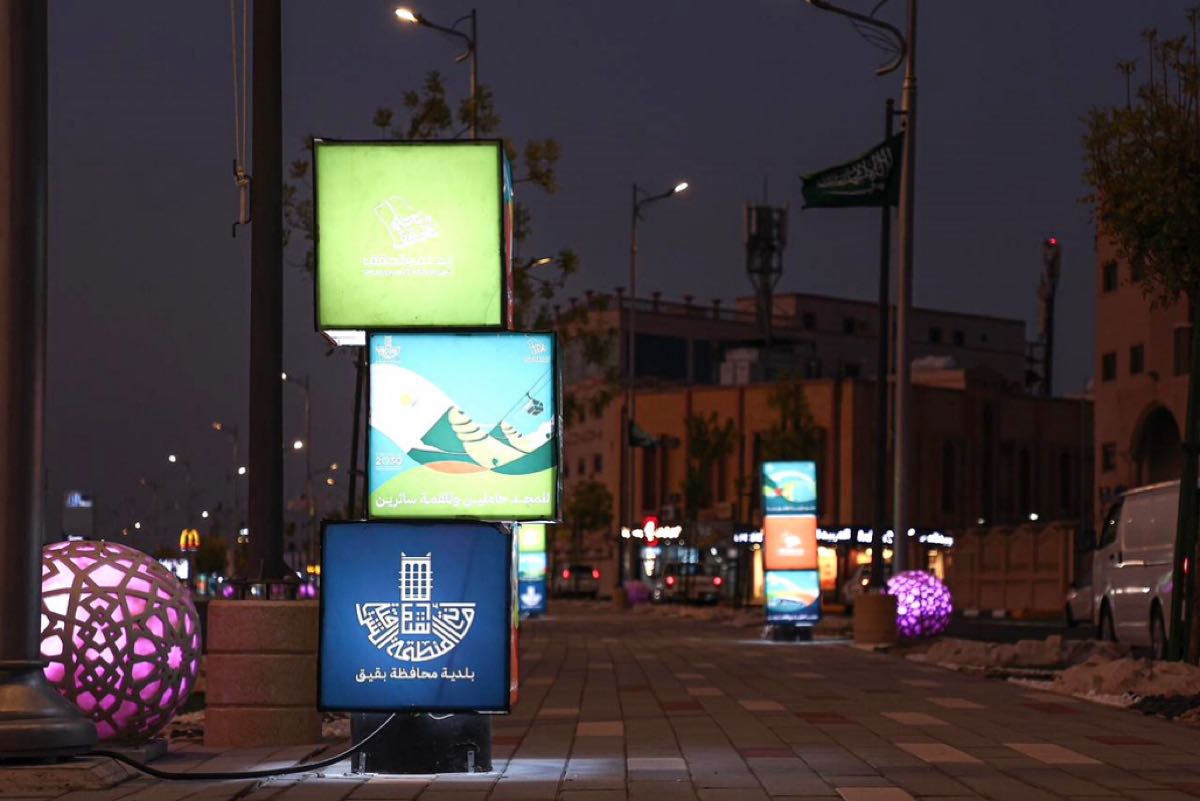 كما شملت الأعمال تركيب 1000 من المجسمات الجمالية، و 8000 من أشكال الزينة والإضاءات، إضافة إلى إضاءة المباني التابعة للأمانة بصور القيادة الرشيدة، وعلم المملكة، والألوان الخضراء.