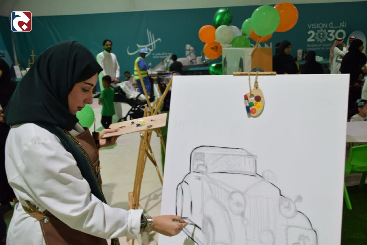 بريشة فنانة.. سيارة المؤسس في احتفالات اليوم الوطني بوسط العوامية
