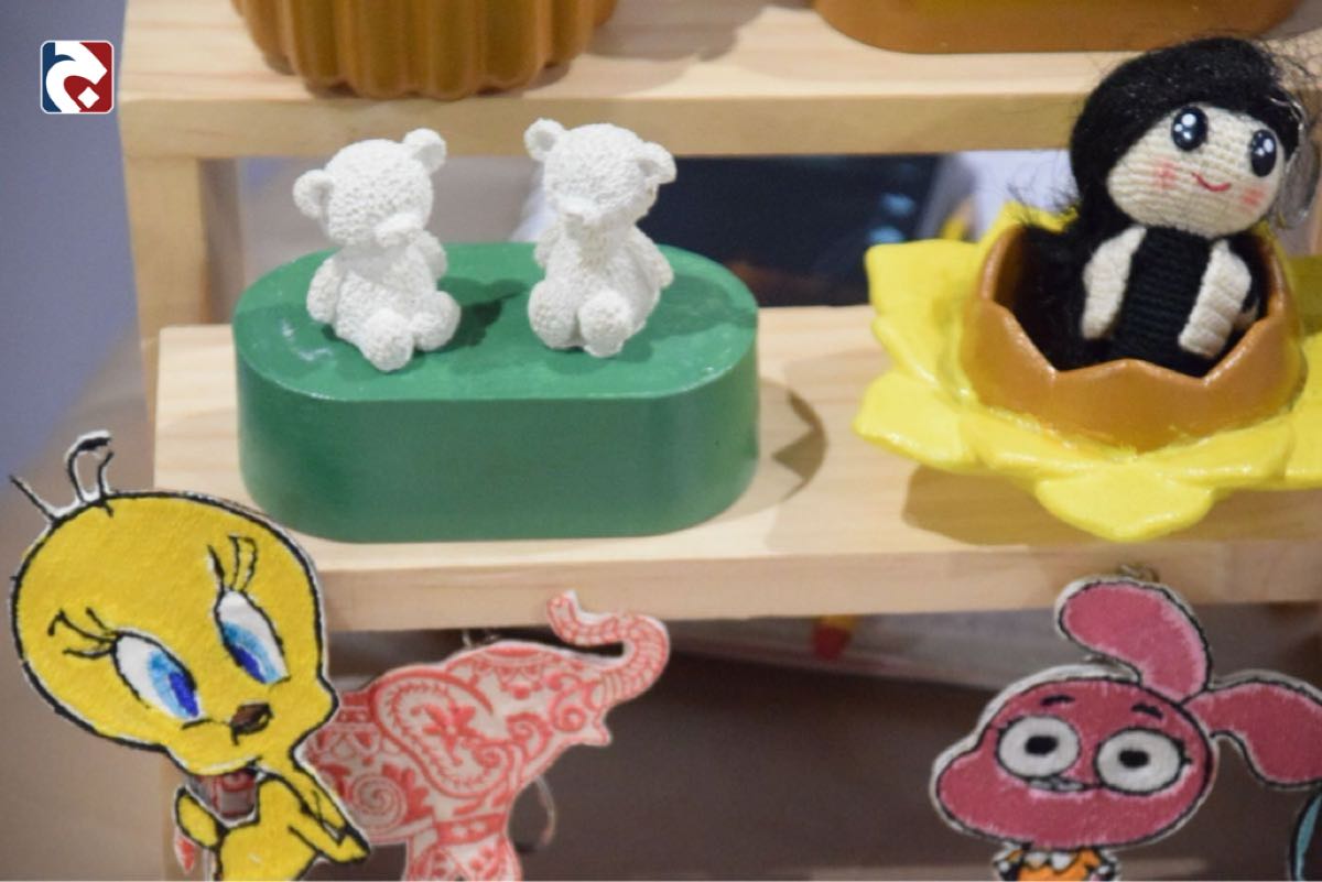 وقدمت زينب خليتيت فن الأومجرامي ”الكروشيه“ بجميع الأحجام والألوان، وأشارت إلى أنها تدمج فن الكونكريت مع الجبس والديكوباج لإنتاج تحف فنية.