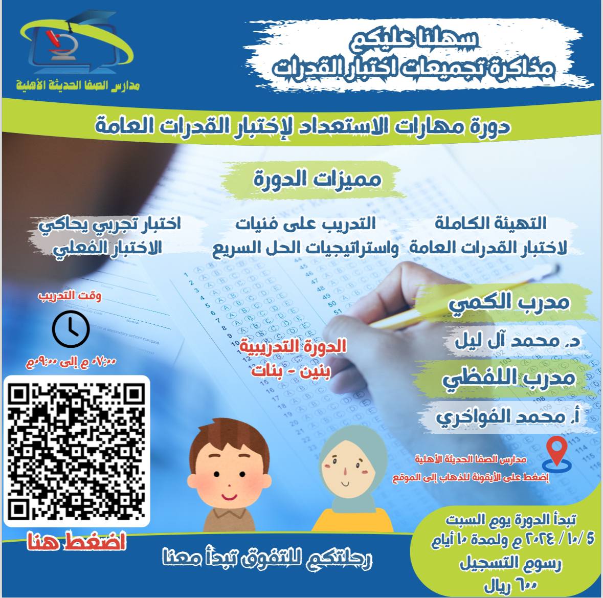 سجل الآن.. دورة الاستعداد لاختبار القدرات العامة في مدارس الصفا الحديثة