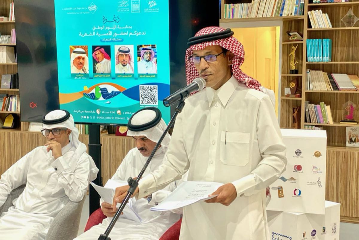 في أمسية وطنية بهيجة، احتفلت جمعية ابن المقرب للتنمية الأدبية والثقافية باليوم الوطني ال 94 للمملكة، وذلك مساء الخميس الماضي بالتعاون مع الجمعية العربية السعودية للثقافة والفنون بالدمام.