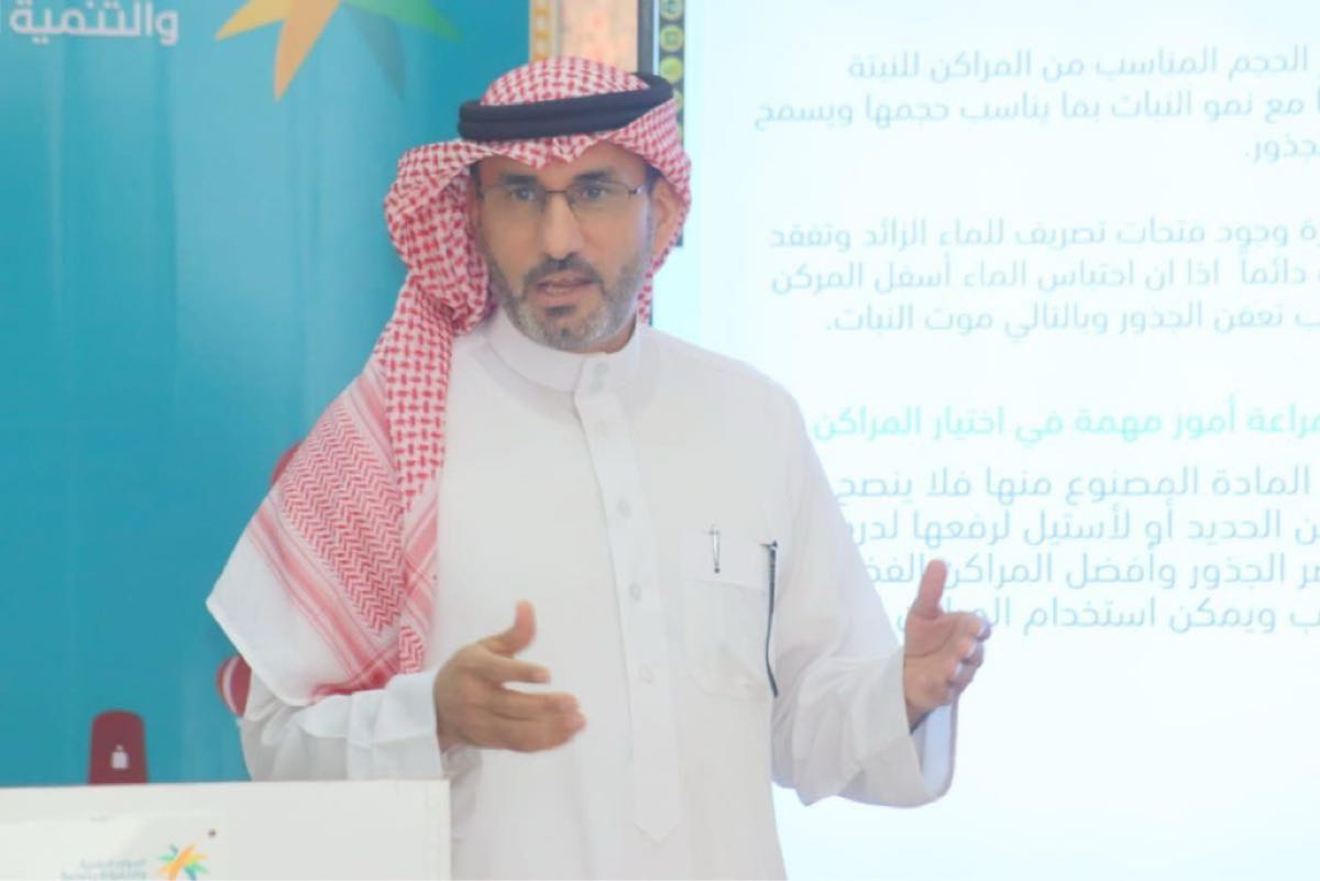وقدم شرحاً مفصلاً عن طرق الري السليمة، وأهمية العناية بمراقبة النباتات، مبيناً أسباب موت النباتات الداخلية.