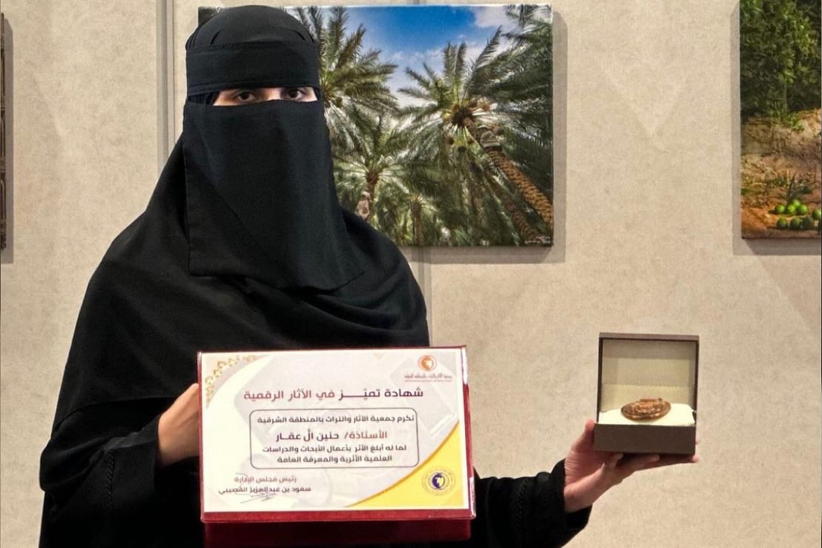 كرّمت جمعية الآثار والتراث بالمنطقة الشرقية، في مقرّها بمحافظة الأحساء، اليوم، حنين آل عقار، الحاصلة على براءة اختراع من مكتب الاختراعات الأسترالي على المستوى الدولي، ومن الهيئة السعودية للملكية الفكرية على المستوى المحلي.