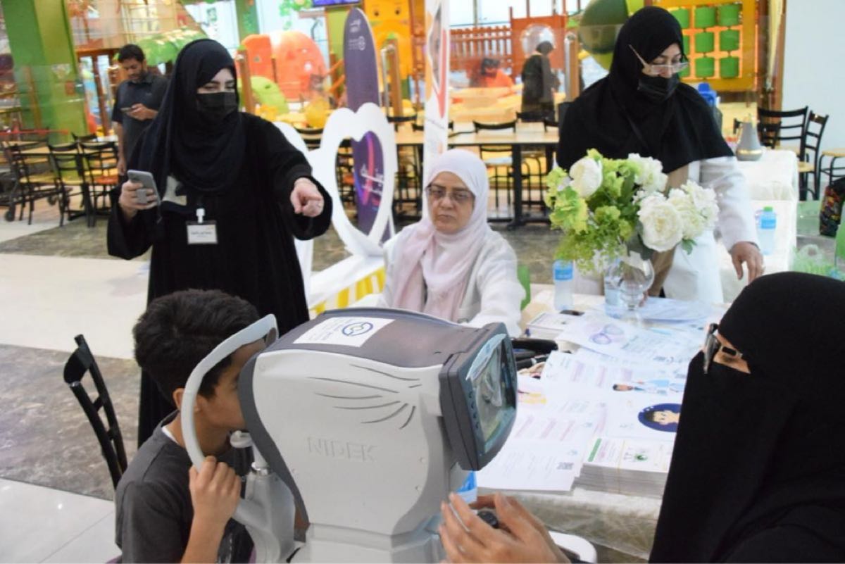 ويهدف البرنامج، الذي يستمر حتى التاسعة من مساء اليوم الجمعة، إلى توعية الصغار بأهمية العناية بصحّة العين، وتقديم فحوصات مبكرة للكشف عن العيوب الخلقية والانكسارية.