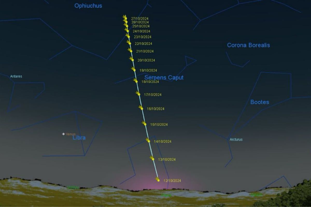 وأضاف مدير المعهد الفلكي أن وهذه ظاهرة نادرة إذ أن ضياء الشمس يحجب الأجرام السماوية أثناء النهار. وتشير الأرصاد إلى أن لمعانه أصبح يوم 10 أكتوبر من القدر سالب 4. وسيقع المذنب على أقرب مسافة من الأرض يوم السبت 12 أكتوبر في الساعة 15:18 بالتوقيت العالمي، حيث سيقع يومها على مسافة 71 مليون كم من الأرض.