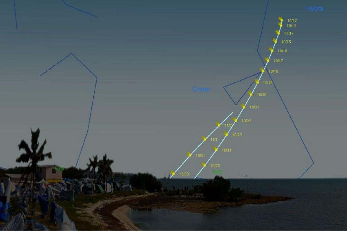ومن المتوقع أن يبقى المذنب مرئيا بالعين المجردة في جهة الغرب حتى نهاية شهر أكتوبر الحالي، ليصبح من القدر 2 يوم 20 أكتوبر ومن القدر 4 مع بداية شهر نوفمبر. ولمن يرغب بمشاهدة المذنب بالعين المجردة فعليه الانتظار لحوالي 30 إلى 45 دقيقة بعد غروب الشمس، ومن ثم النظر إلى جهة الغرب قريبا من المنطقة التي غابت عندها الشمس، وعندها سيشاهد المذنب كبقعة غبشاء، ومن الأماكن المظلمة يمكن رؤية الذنب بشكل واضح، وتبين الصورة المرفقة موقع المذنب في السماء بعد 45 دقيقة من غروب الشمس خلال شهر أكتوبر، وذلك كما يشاهد من مناطق وسط الجزيرة العربية.
