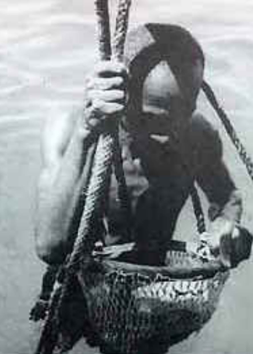 تقدم الغواص سبع البر والبحر حسين آل سعيد - العوامية - على حافة محمل شريدة كأول النازلين تحت الماء بينما الباقون لم يزالوا يحتسون كؤوس الشاي ويدخنون ”النارجيلة“، غاص أبوصالح عميقا في مغاص ”ابو ديچ“ وطالت مدته تحت الماء وكل رفاقه يعرفون بأنه صاحب نفس طويل، راح يفتش بين أعشاب البحر عن أصداف مختبئة بين الصخور، وبينما يداه في حراك البحث وجد ”صدفة خربة“ أي محارة ليست مغلقة، طال عليها زمنها، لم تأت إليها الأيدي لتأخذها، ”اخربه“ تخادع العيون وتصرف الأنظار عنها، قيل بأنها دون غطاء وقيل بأن غطائها مفتوحا عن آخره، متآكلا ومن يراها يحسبها تالفة، لكن ذكاء الغواص حسين بن سعيد رفعها وإذا بشيء يبرق في وجهه لم يصدق عينيه أهو في حلم أم علم، ارتعش جسمه من شدة المفاجأة، حالا أطبقها وهز الحبل إشارة للسياب لكي يسحبه سريعا، خرج من جوف الماء رفع رأسه وقبل أن يسترد أنفاسه خاطب بن تركي: ”نوخذانا انتر“ رد عليه باستغراب ”چيفه انتر“ قال له أبوصالح: ”طلعنا، الخير جانا“!