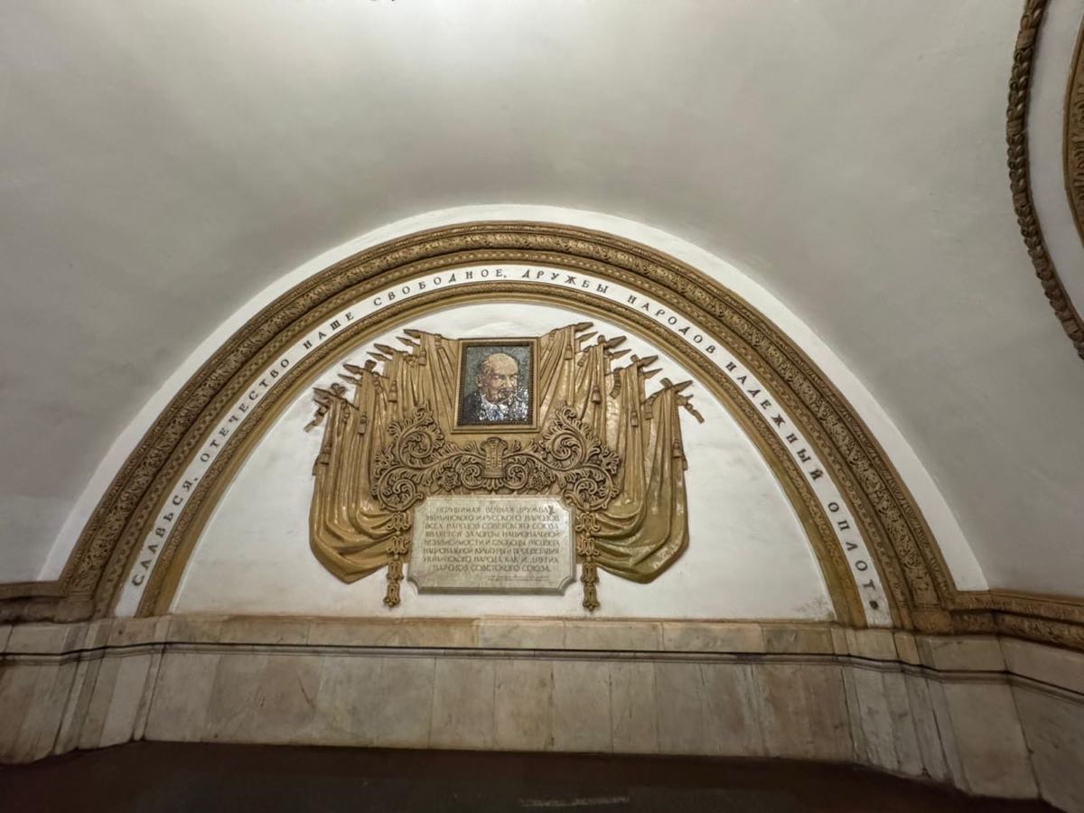 4. مترو موسكو: يُعد مترو موسكو أحد أعظم الإنجازات بعد الثورة البلشفية، حيث تم تصميم محطاته لتكون بمثابة“قصور للشعب”، مزخرفة بتصاميم فخمة تمجد الشعب العامل والنظام الاشتراكي.