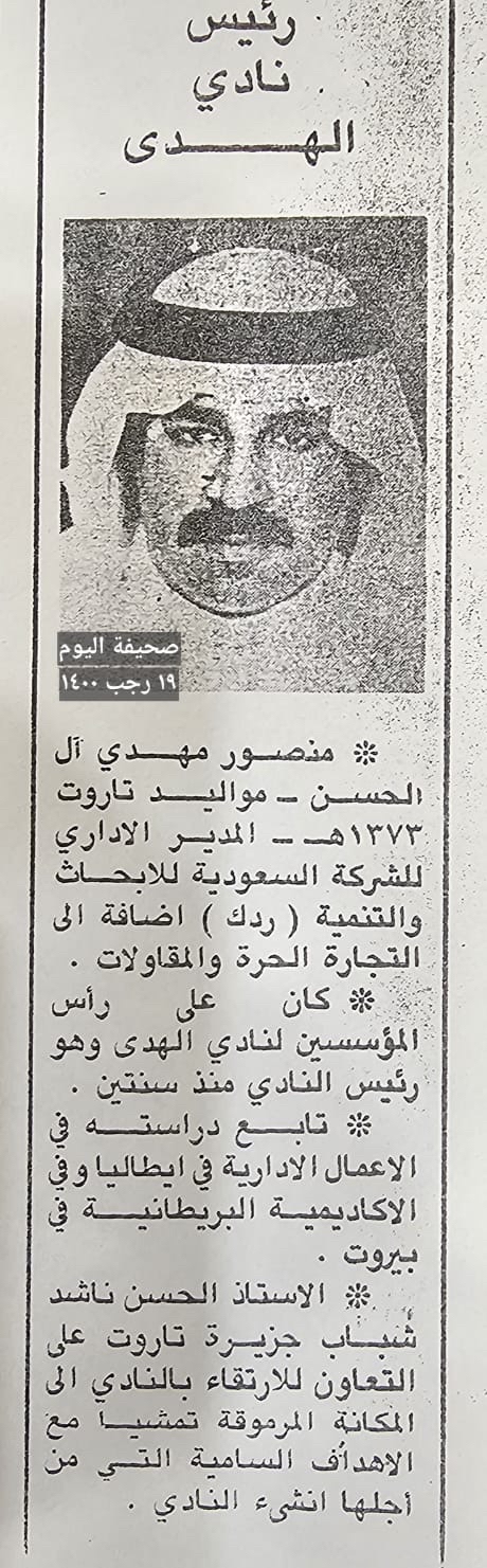 ليلة الخميس الماضية، ليلة لا تُنسى، زُيّنت الصدور بميداليات الذهب، وشعاعها تراسل لمسافة زمنية للوراء تطل على ذاك الزمن مطلع عام 1976 م حين أتى اثنان من أبناء البلد للعاصمة الرياض، وهما الشابان «منصور آل حسن وعبد الحسين زمزم» لمتابعة سير معاملة نادي الهدى لدى رعاية الشباب. تحدثا بلباقة وحوار مُقنع بأحقية شباب النادي في التسجيل، جهودهما تضافرت مع جهود سابقة كان وراءها رجال وأعضاء كُثر، هذان الرجلان قوبلا بالترحاب وبالآمال المُرتقبة من لدن المسؤولين، مُتقاطعة مع زيارات تَفقدية من قِبل أعضاء فرع رعاية الشباب بالمنطقة الشرقية بالدمام، خلال تفقدهم لمقر نادي الهدى أكثر من مرة، جولات مُدونة مرفوعة سلفًا عن سير أنشطة النادي طوال عام. أثنى المسؤولون على حماس الشابين ووعدوهم خيرًا، بوادر حلم يلوح في الأفق. حين ودّعا الرياض راجعين للبلد، فرحتهم تطوي المسافات المُقدرة زمنيًا بـ 6 ساعات، درب مُتعرج وخطر في ليل حالك لكنه مُضاء بالأمل، هون عليهم مشقة السفر، أن سعيهم لن يذهب سُدى. كان لمتابعتهما الحثيثة نُذر خير، فبعد مرور بضعة أشهر، أتى الخبر اليقين في شهر رجب عام 1376 هجرية بتسجيل نادي الهدى بتاروت رسميًا ضمن كشوف أندية المملكة التي ترعاها الدولة.