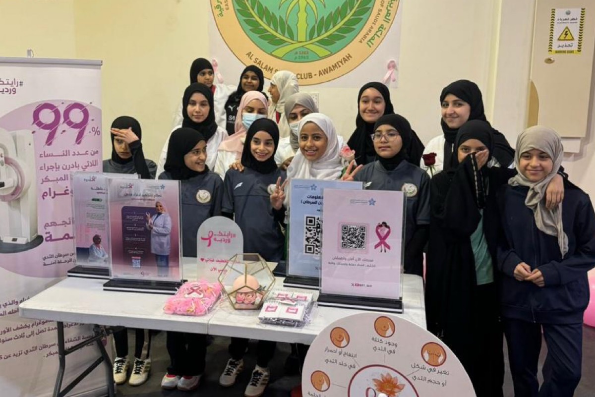 وفي سياق متصل، قام قسم الكشف المبكر عن سرطان الثدي بمراكز القطيف الصحية بتنظيم زيارة لنادي السلام الرياضي النسائي بالعوامية، تزامنًا مع شهر التوعية بسرطان الثدي. وقدمت المختصات شرحًا مفصلاً للمنتسبات عن أعراض المرض وطريقة الفحص الذاتي، كما تم تعريف السيدات بجهاز الماموجرام وأماكن توفره لإجراء الفحوصات اللازمة.