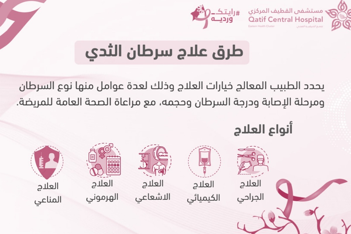 5 أنواع من العلاج لسرطان الثدي في مستشفى القطيف