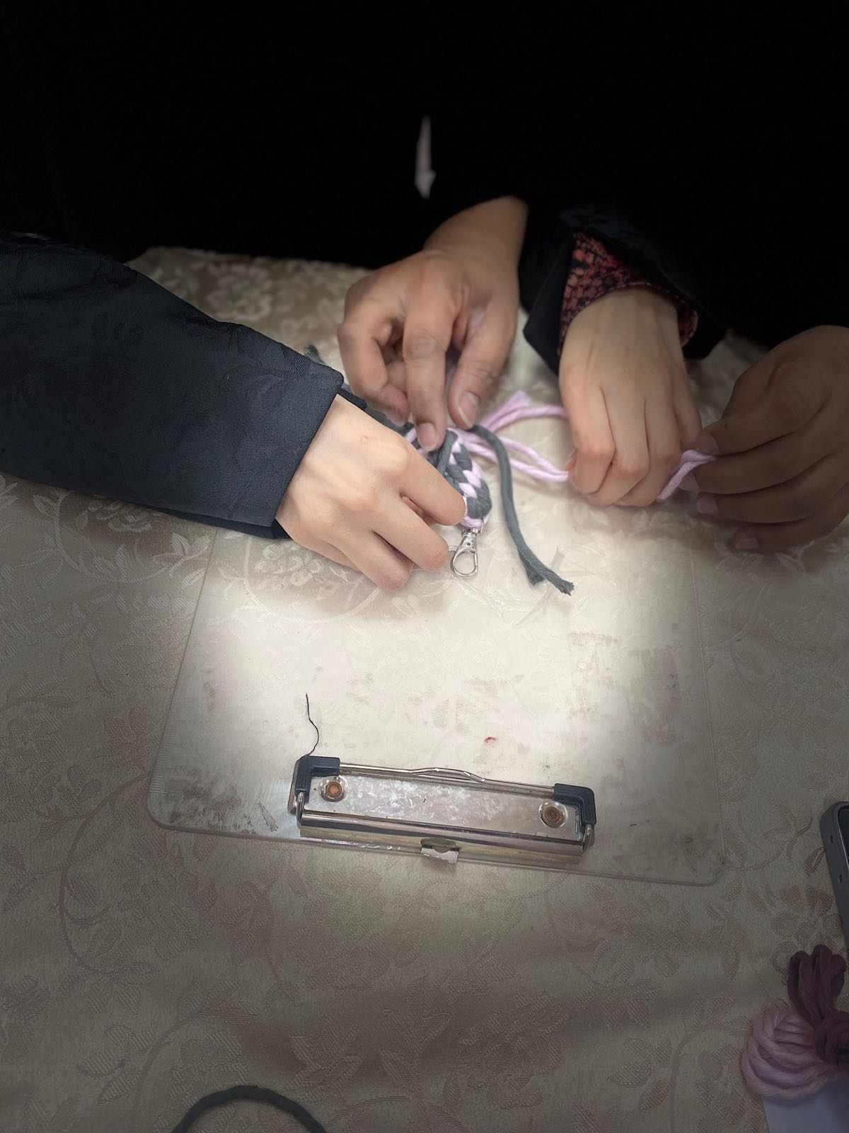 وشهدت الورشة تدريبًا عمليًا لمستفيدات الضمان من فئات الصم والبكم والمكفوفين ومتلازمة داون، على صناعة ”غرزة كراون“ بأربعة خيوط، وهي الغرزة الرئيسة في هذا الفن، بالإضافة إلى صناعة الأساور والخلاخيل، بهدف تمكينهن من بدء مشاريعهن التجارية من المنزل.