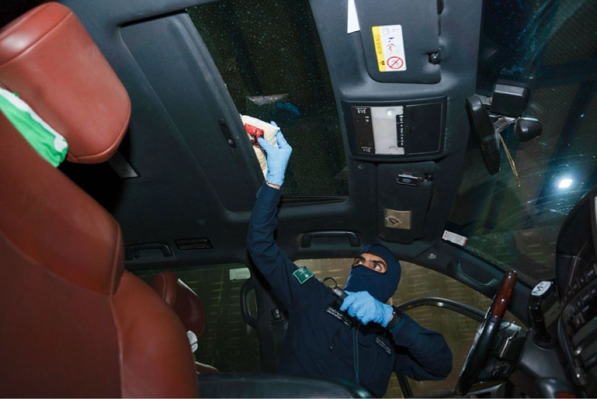 وأشارت إلى العثور على 86,000 حبة كبتاجون في المحاولة الأولى، مُخبأة بداخل فتحة السقف الخاصة بالمركبة، وجزء من الكمية كان مُخبأ أسفل الملابس التي يرتديها المهرب.