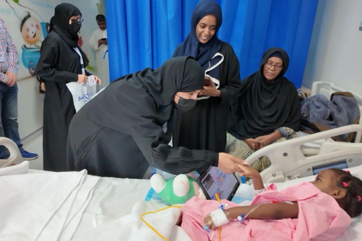 وتضمنت المبادرة جولة تعريفية على أقسام المستشفى والاطمئنان على صحة الأطفال المرضى، وتوزيع الهدايا عليهم بهدف إدخال الفرحة إلى قلوبهم والتخفيف من معاناتهم.