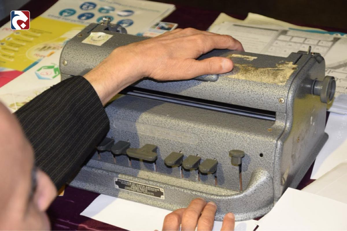 وفي ركن آخر من أركان الفعالية، أُتيحت الفرصة للقراءة بـ ”لغة برايل“ من خلال مشاركة مركز رعاية مكفوفين التابع لجمعية مضر الخيرية، حيث استعرض حسن سليمان فارس آلية عمل الآلة الكاتبة المخصصة لهذه اللغة، شارحًا كيفية تكوين الحروف من خلال توزيع النقاط الست التي تُشكل خلية برايل.