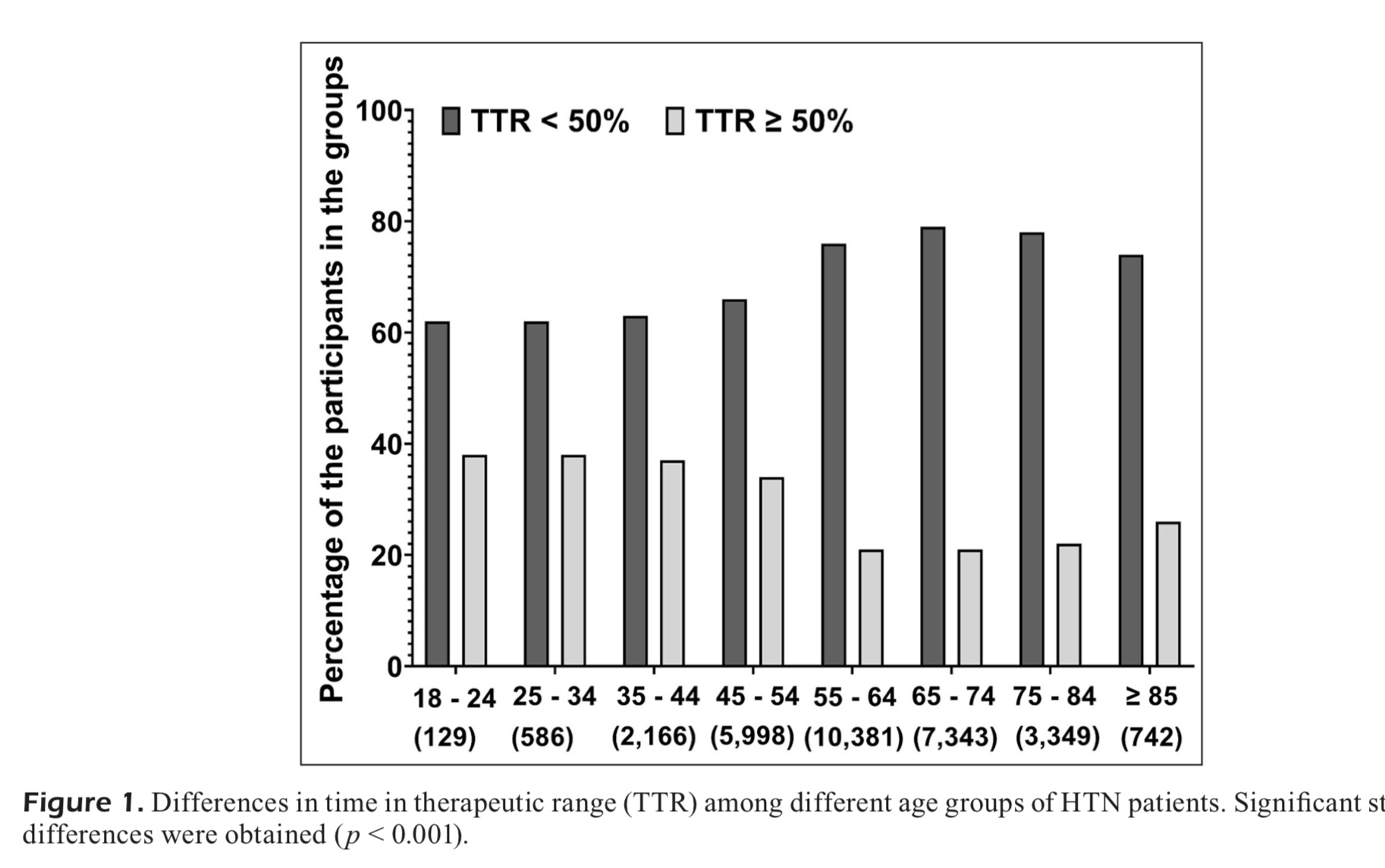 خلال هذه الدراسة جرى تقييم مستوى ضغط الدم على مدى خمس سنوات باستخدام المدى الزمني للنطاق العلاجي (Tim in therapeutic range - TTR). استخدام المؤلفين للمدى الزمني للنطاق العلاجي كان بهدف أن تكون معظم أو كل قراءات ضغط دم المريض ضمن النطاق العلاجي المطلوب حسب آخر الإرشادات التشخيصية [3] لمنظمتي القلب الأمريكيتين ACC/AHA. فقد أثبتت الأبحاث السابقة [4] أن زيادة المدى الزمني للنطاق العلاجي ينعكس إيجابيًا على فاعلية العلاج والتحكم بضغط الدم ويسهم في تقليل الأضرار الجانبية أو المضاعفات الناتجة عن ارتفاع ضغط الدم غير المنضبط.