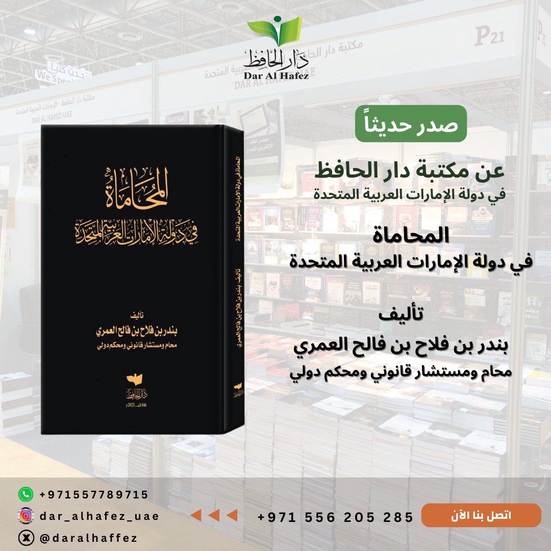 صدر مؤخرا عن دار الحافظ في دولة الإمارات العربية المتحدة كتاب بعنوان ”المحاماة في دولة الإمارات العربية المتحدة «دراسة مقارنة»“، من تأليف المحامي والمستشار قانوني والمحكم دولي بندر بن فلاح بن فالح العمري. يتناول الكتاب موضوع المحاماة من منظور قانوني، مسلطًا الضوء على نشأتها وتطورها التاريخي عبر العصور بأسلوب مقارنة بين الأنظمة القانونية المختلفة، مع التركيز على القانون الإماراتي.