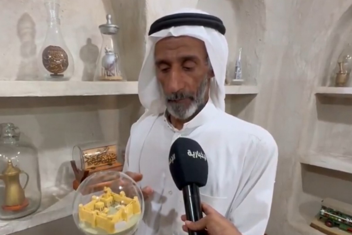 يواصل فنانٌ متمرسٌ رحلته الإبداعية الفريدة، ليُحوّل الزجاجات إلى لوحاتٍ فنيةٍ تحكي تاريخ المنطقة العريق. ”أبو وحيد“، كما يُعرف بين أهالي الأحساء، يُبدع مجسماتٍ مُصغّرة داخل الزجاجات، تُجسّد تراث الأحساء وتاريخها العريق، في حرفةٍ تتطلب دقةً وصبرًا كبيرين.