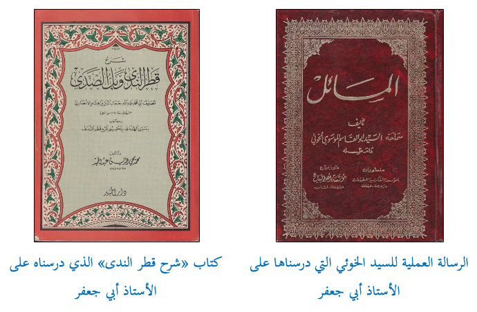 وبعد ذلك بدأنا في دراسة كتاب «شرح قطر الندى وبلّ الصدى» في النحو لابن هشام. وكان في كلّ درس يستحثّنا على أهمية التحضير وبعد ذلك المراجعة، كما أنه كان يجري لنا الاختبارات بصورة مرحلية، سواء في المسجد أو في الدروس الحوزوية ليتعرّف مستويات كلٍّ منّا.