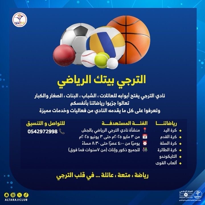 أطلق نادي الترجي الرياضي بمحافظة القطيف مبادرة مجتمعية نوعية تحت شعار ”الترجي بيتك الرياضي“، داعياً كافة الأهالي مع أبنائهم وبناتهم للمشاركة في فعالياتها المجانية.
