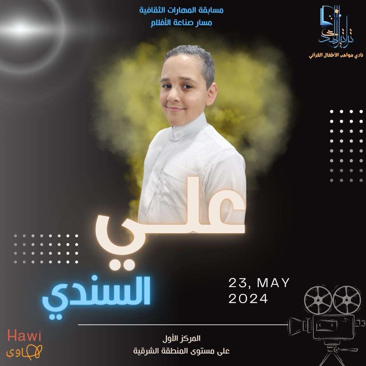 سجّل الطالب علي رائد السندي، البالغ من العمر 9 سنوات، ويدرس بالصف الرابع الابتدائي في مدرسة ضرار بن الأزور بمدينة صفوى، إنجازًا نوعيًا بحصوله على المركز الأول في مسار ”المانجا“ ضمن المسابقة الثقافية على مستوى المنطقة الشرقية، ليتأهل بذلك لتمثيل المنطقة في المعسكر الوطني للفائزين على مستوى المملكة بالرياض.