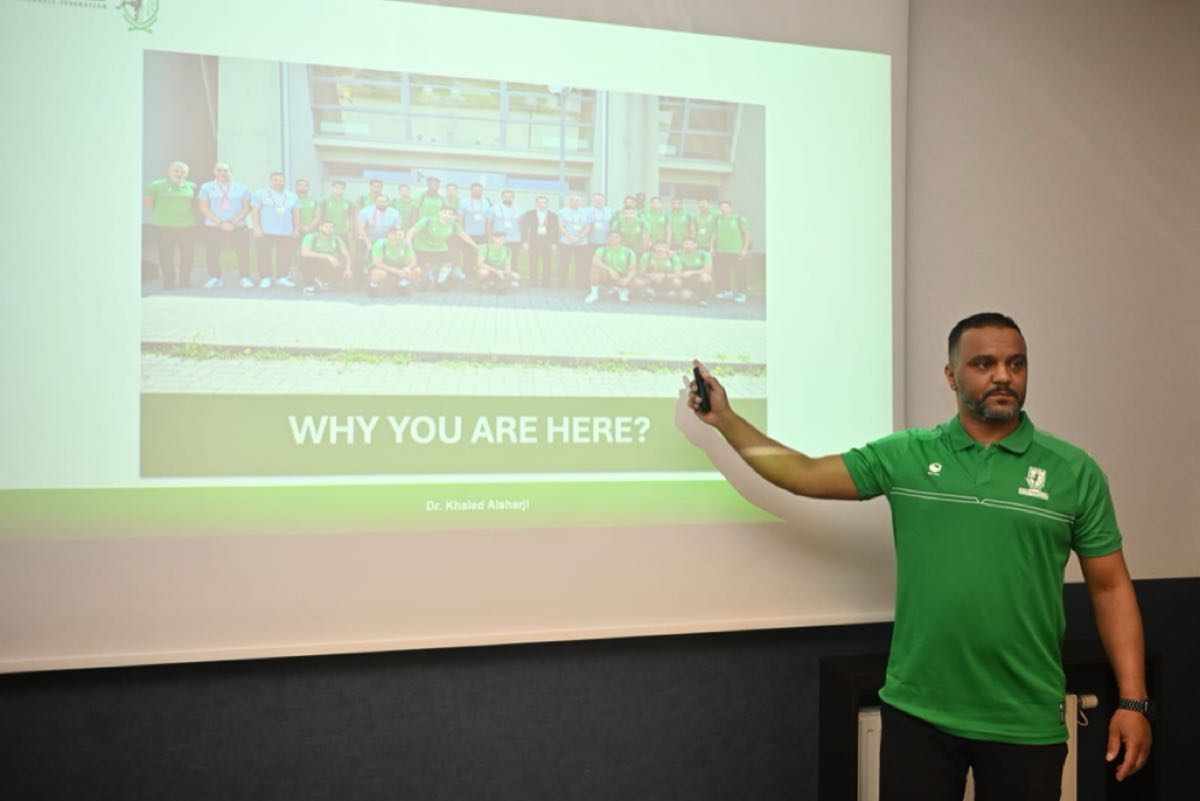 وتناول مدير الأداء العالي في الاتحاد والمحاضر الدولي، الدكتور خالد الشرجي، مفاهيم متقدمة في ”التهيئة الذهنية والجاهزية النفسية في البطولات الكبرى“، بحضور رئيس الاتحاد حسن هلال، وعضو مجلس الإدارة نور الزاير، إلى جانب الجهاز الإداري للمنتخب.
